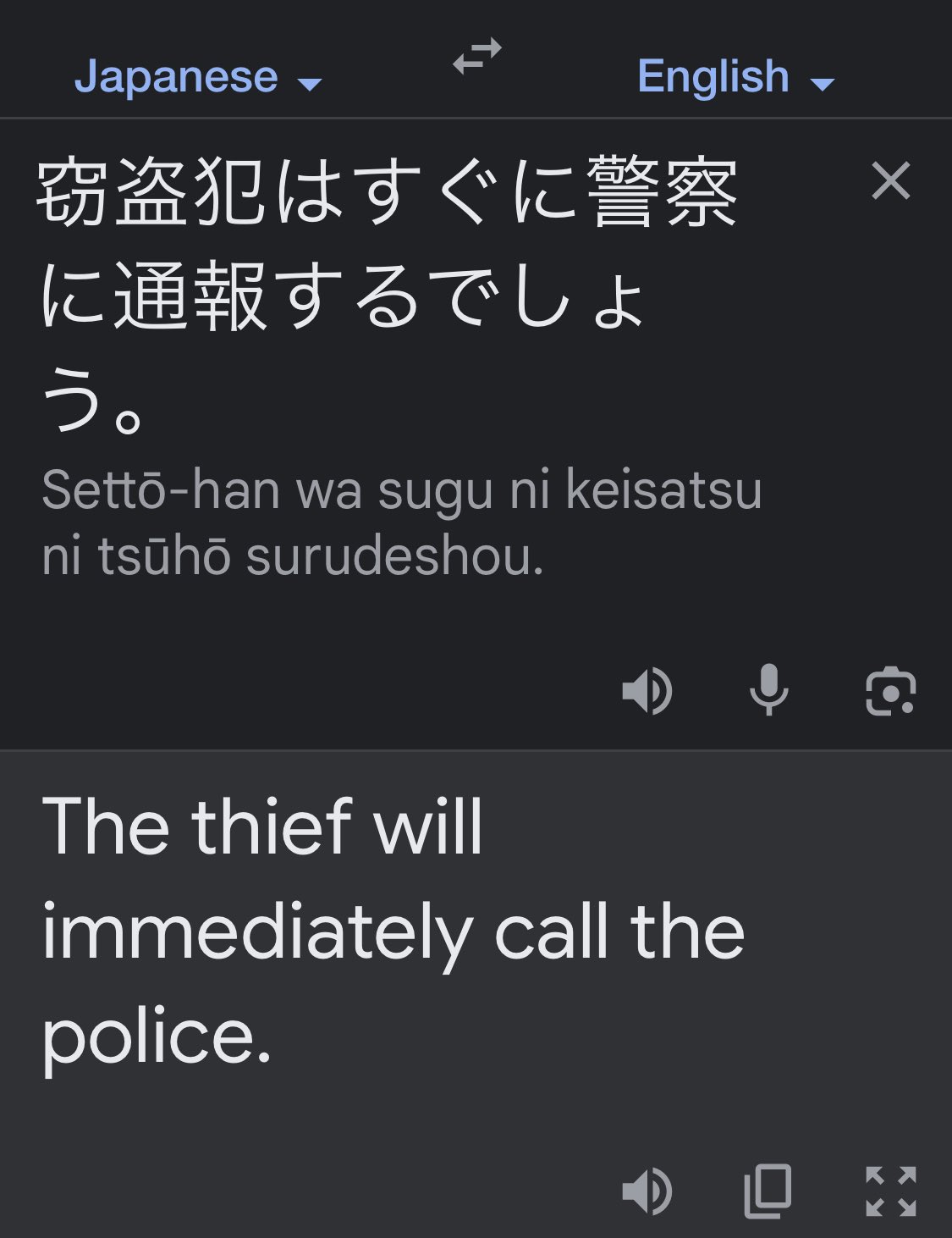 @Isa_rentacs 「泥棒はすぐに警察に通報します」英語直訳前の日本語はこんなのでしょうね。日本語としてはこれでも通用するところが日本語の曖昧な部分ですね。
