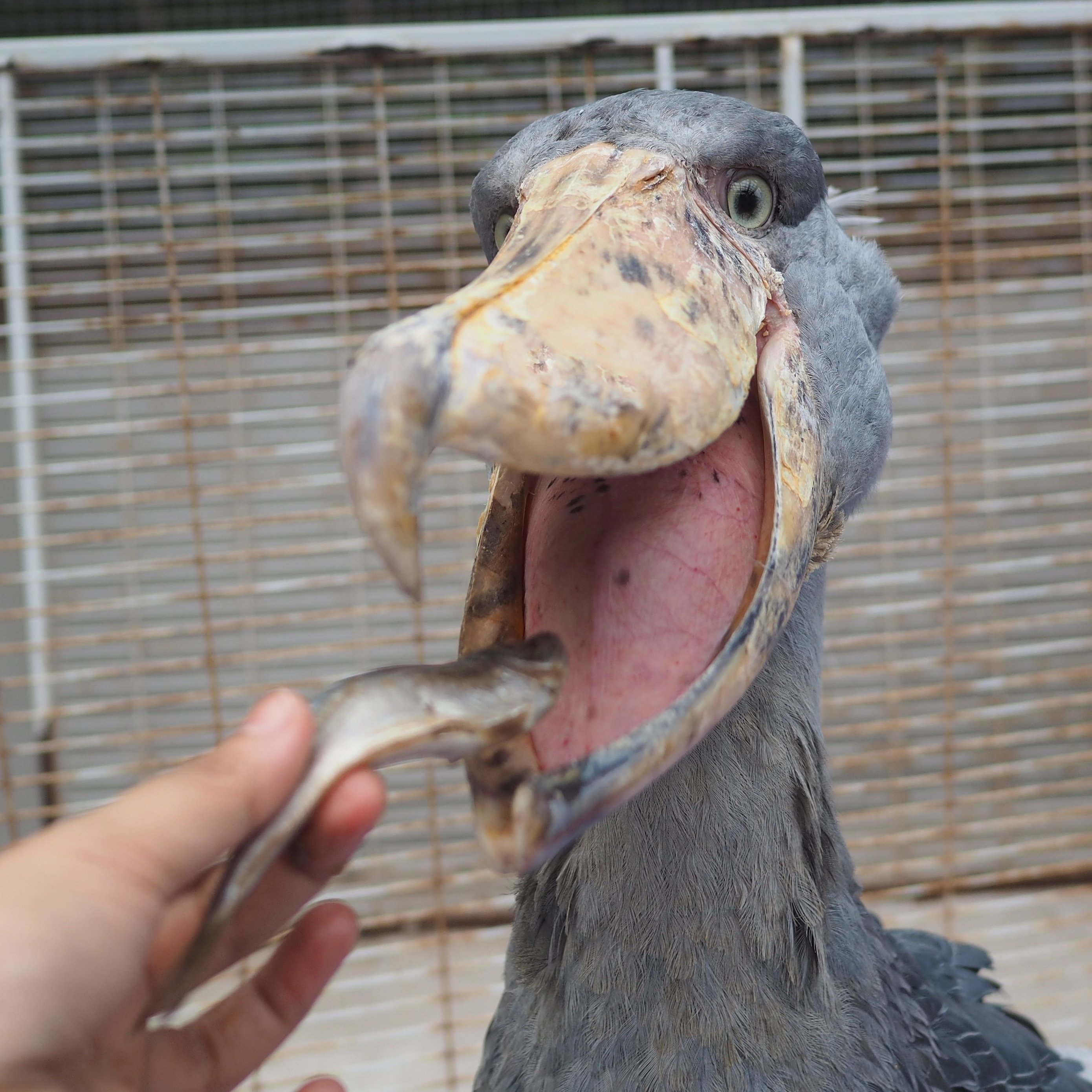 魚で喜ぶハシビロコウさんかわいい。お腹いっぱい食べて幸せになってほしい