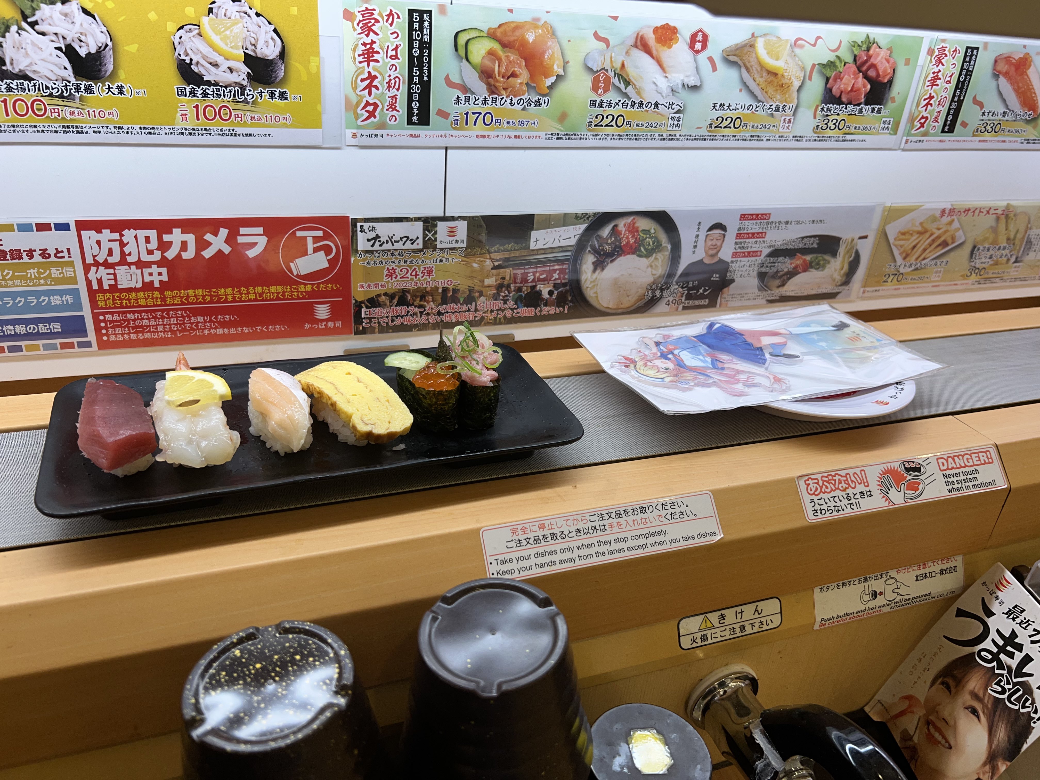 待ってwww アクリルスタンドは店員さんが持って来てくれるのかなって思ってたらお寿司と一緒にレーンで流れてきて草 流れるねねち🐟 https://t.co/olzB93NzgO