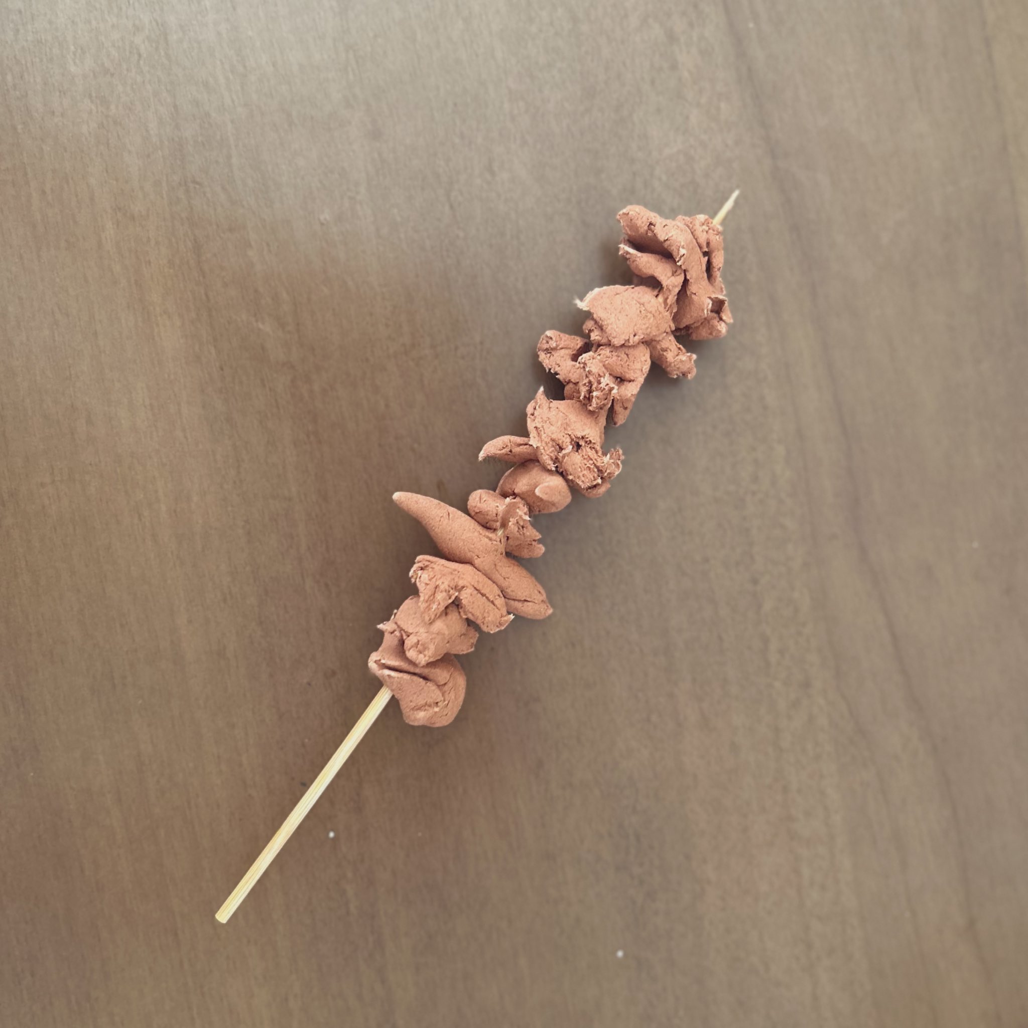 何作っても可愛くなりそうな粘土から息子が錬成した焼き鳥(皮) https://t.co/SYbB6oXBLO