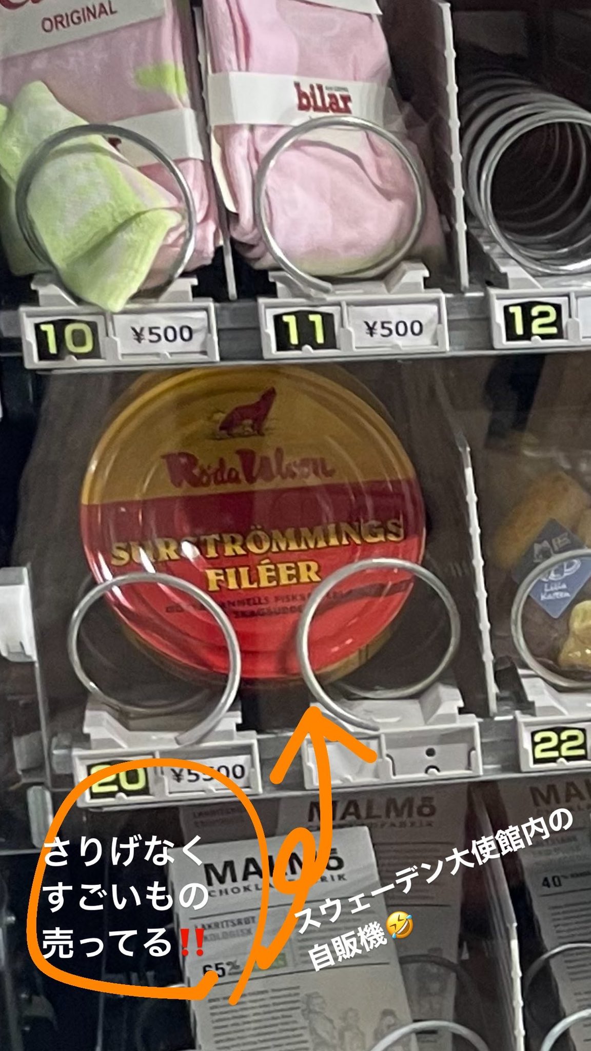 しかし今回日本で一番驚いたのはやはりスウェーデン大使館にあった自販機のコレだな。こうやって売ってること自体すごすぎる。 https://t.co/FzLboaYRxs