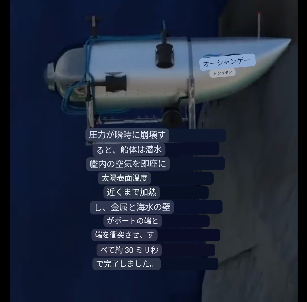 タイタンの末路のイメージ動画が怖すぎる😱「🌊 FLASH – ビデオは、タイタン潜水艦がタイタニック号の残骸に向かって降下中にどのように爆縮した可能性があるかを示しています」https://t.co/9liNusEMPM