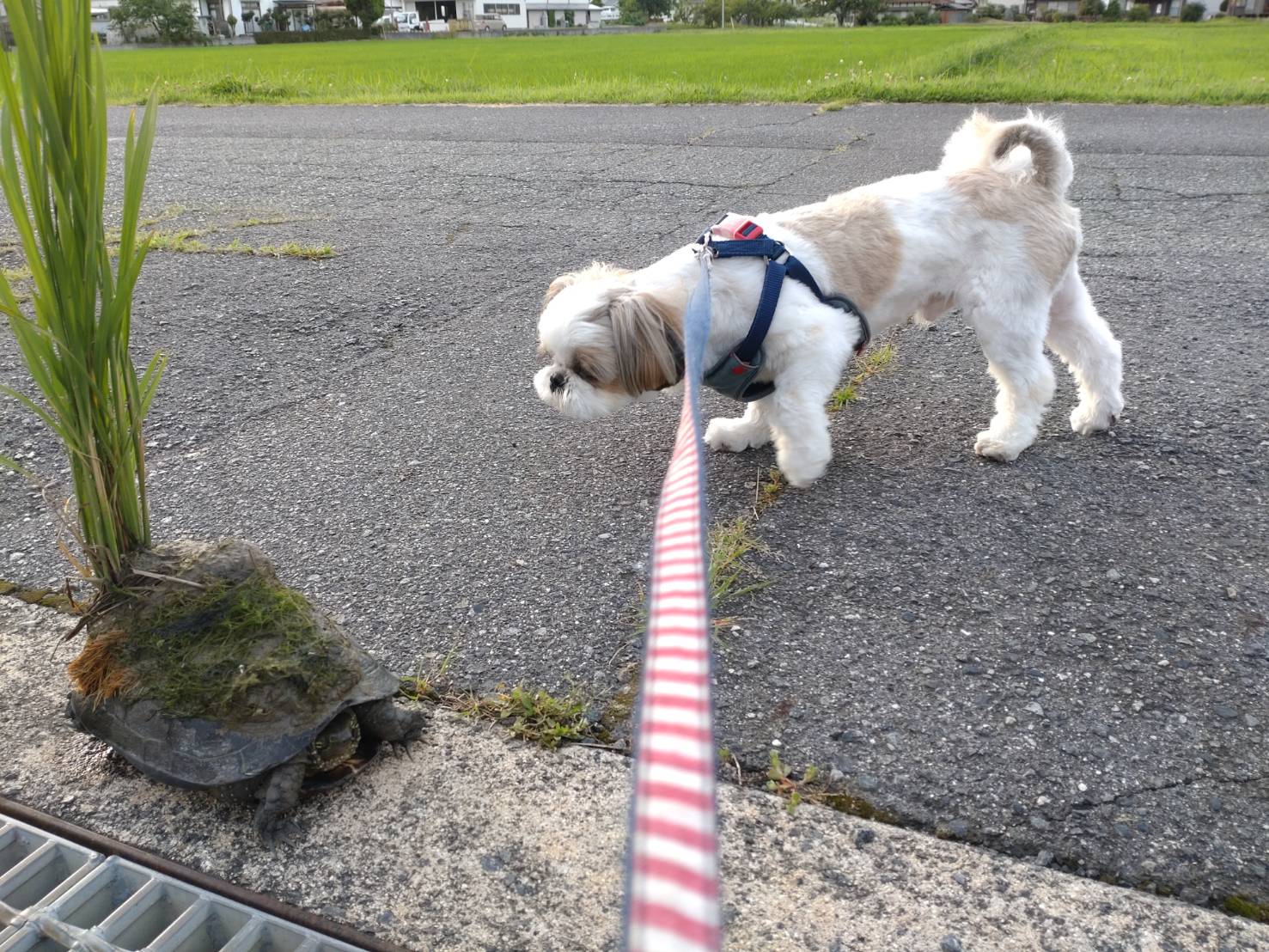 さんぽで遭遇したカメ。なぜ甲羅にイネ生えてる?? https://t.co/2LithKQxae