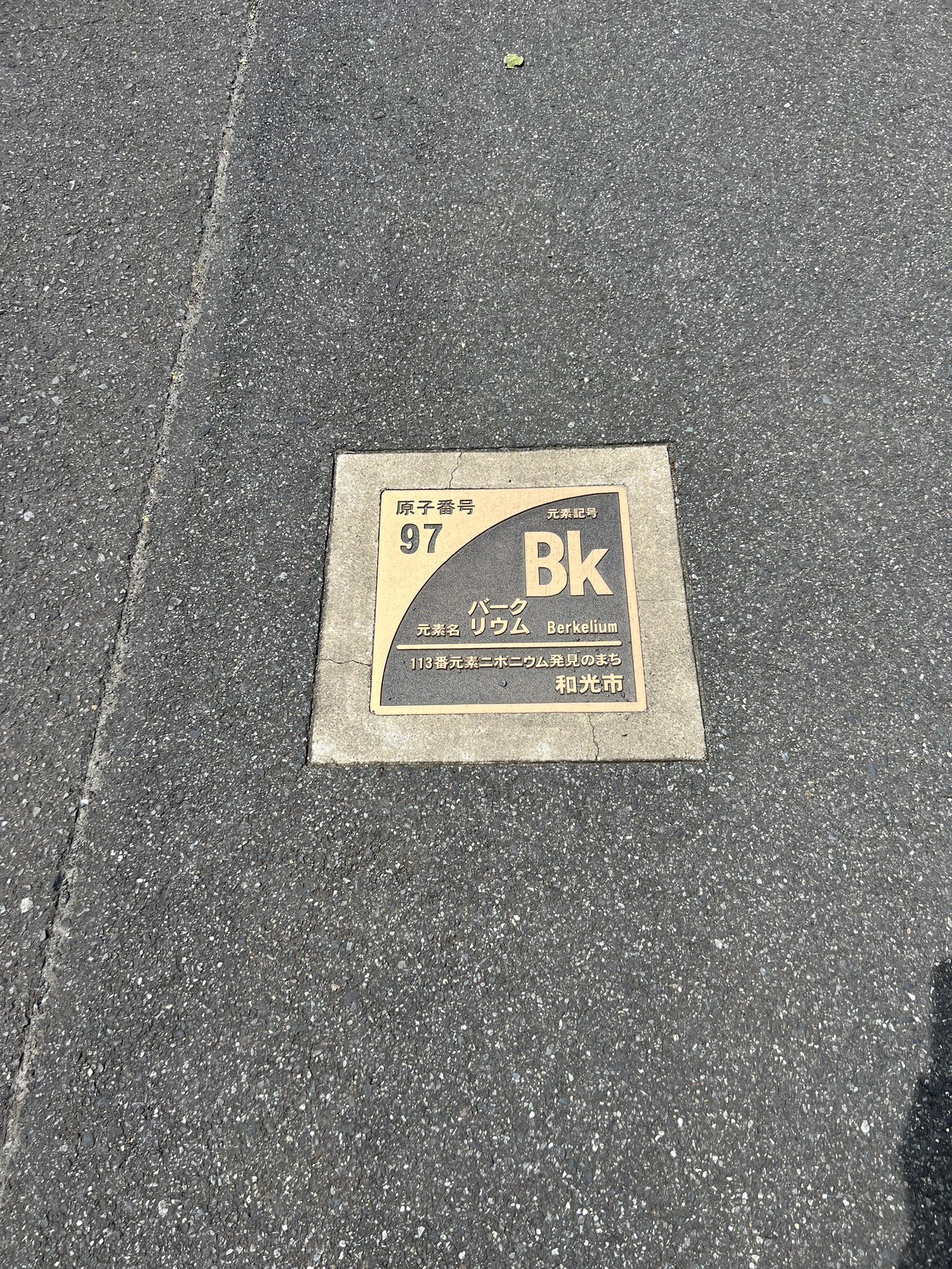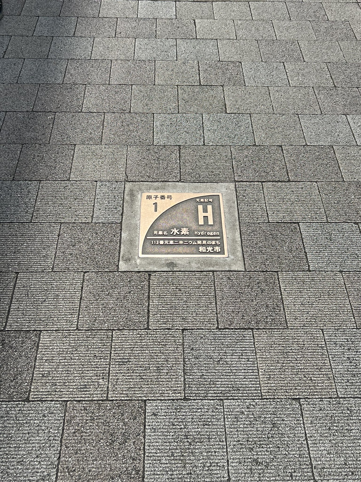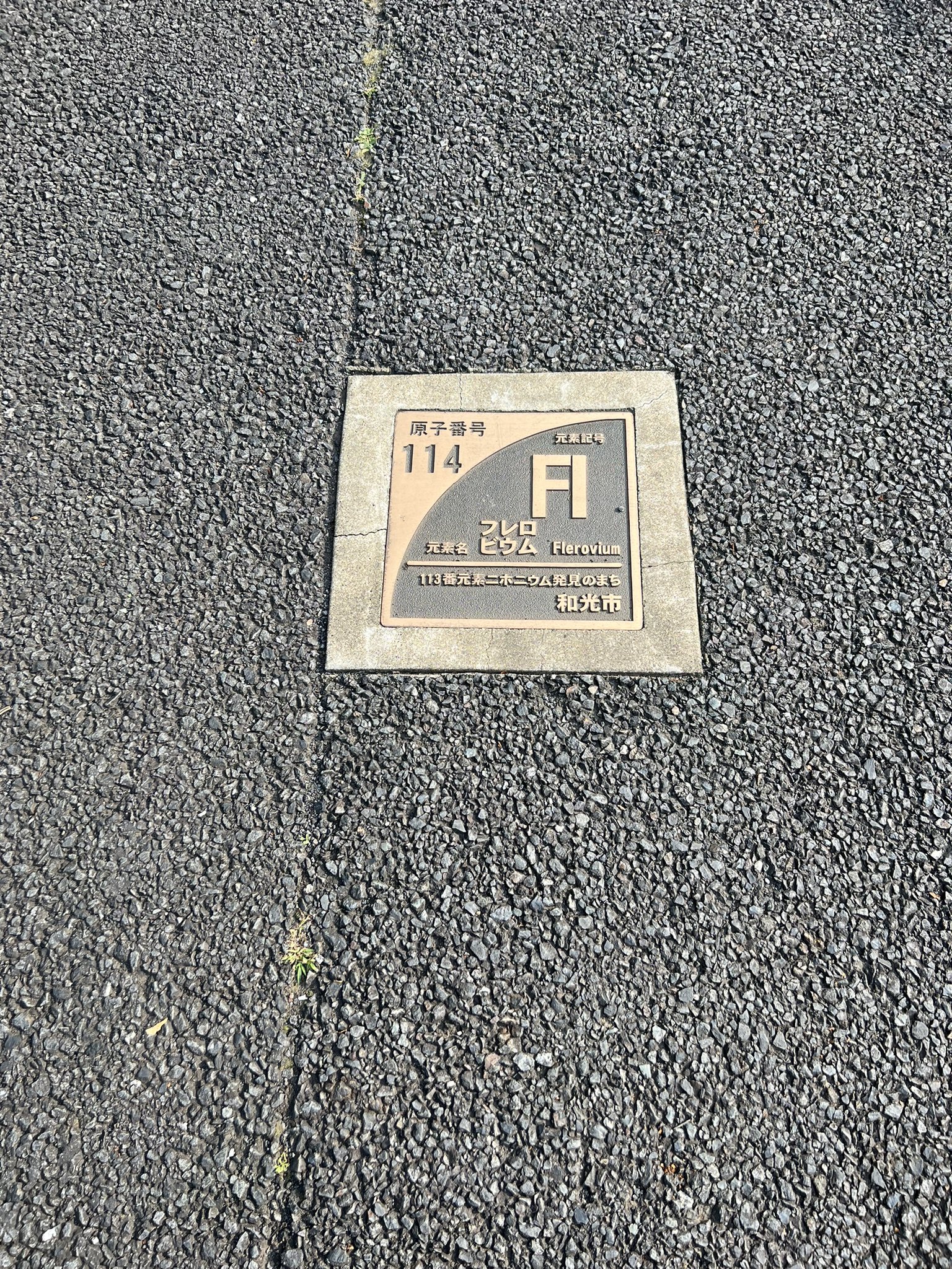これのおかげもあり小学生の子供が周期表を丸暗記していて驚きました。理研の西門でちょうど113 Nhになるように配置されていますが、その先、118 Ogまで続いているところにこだわりを感じます。