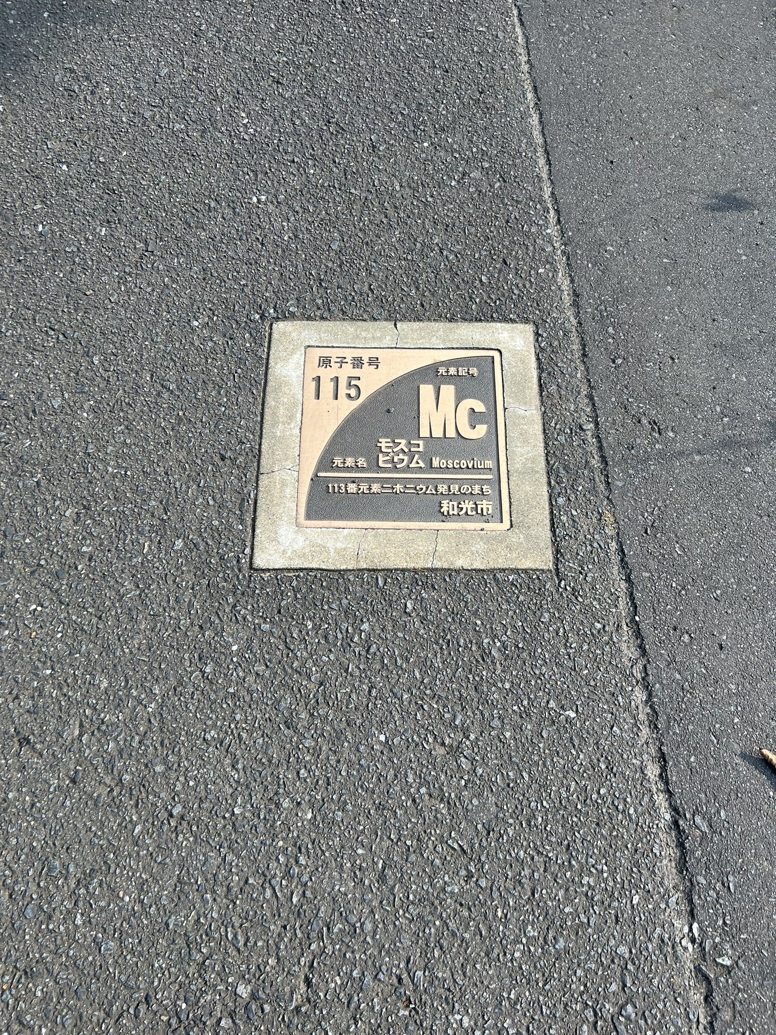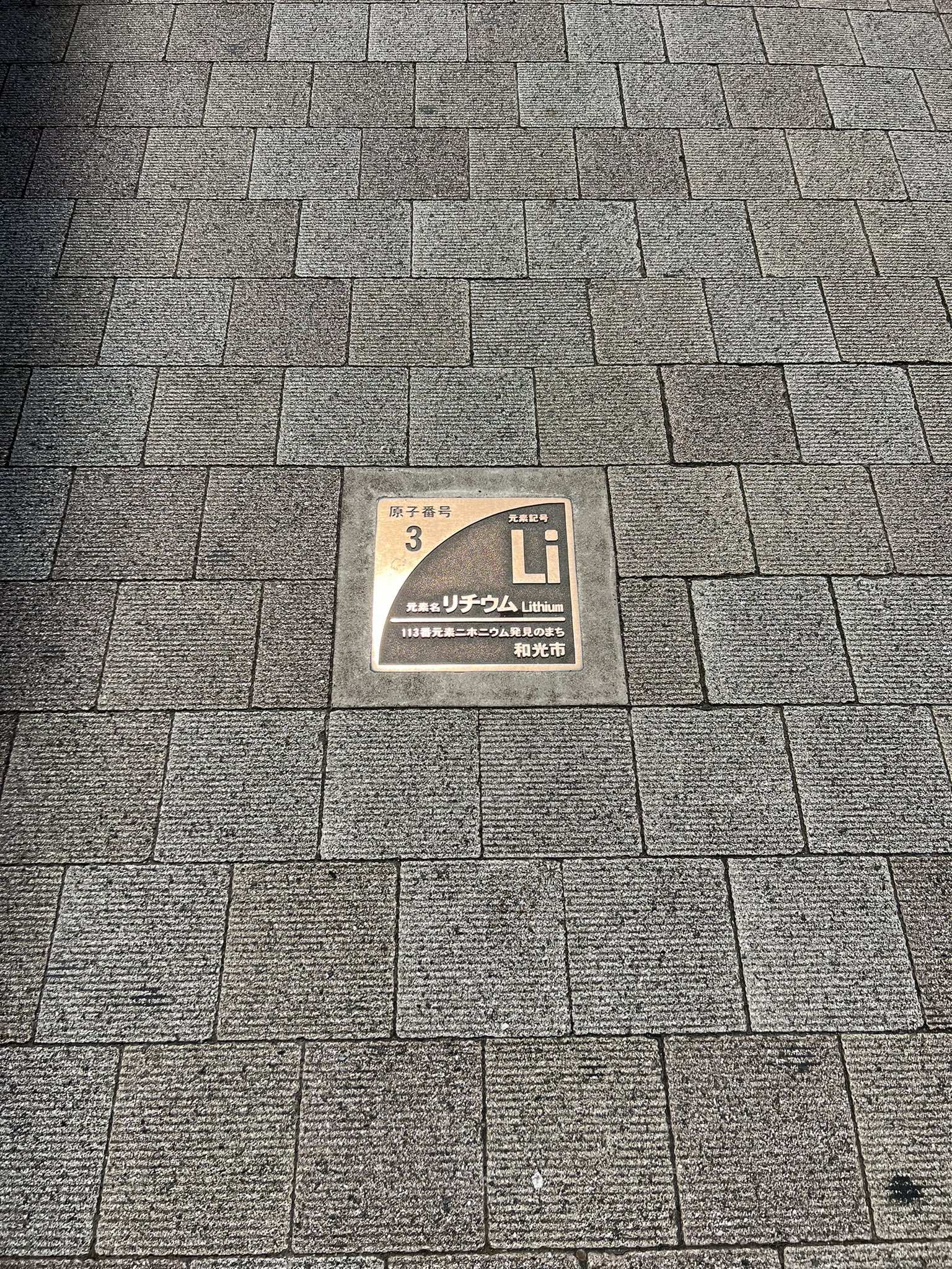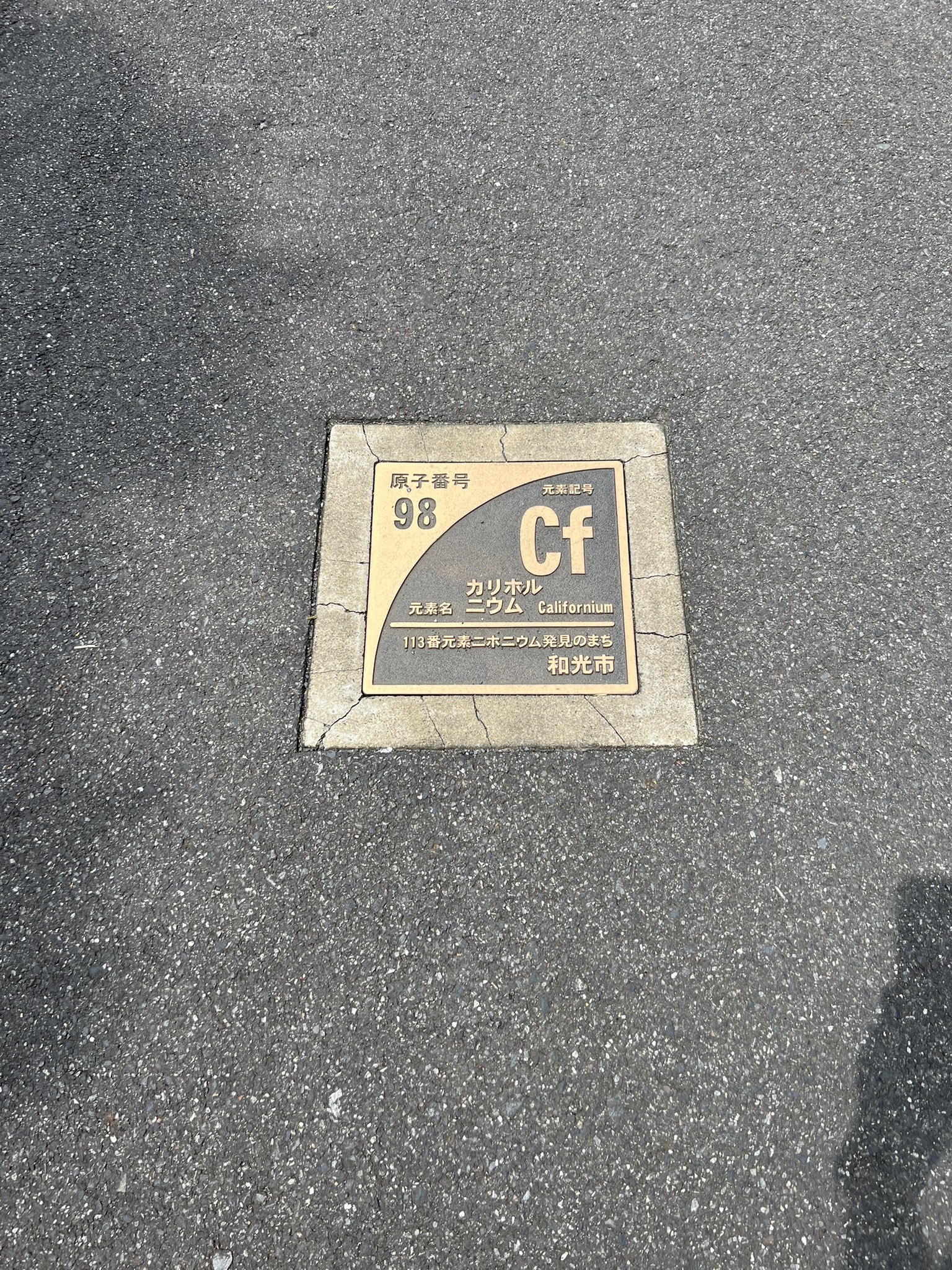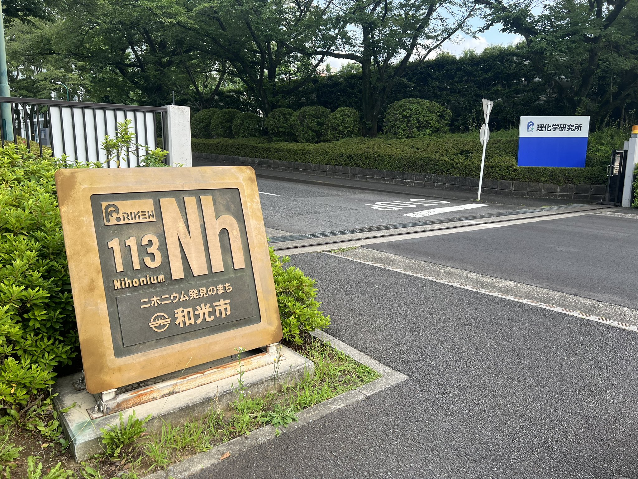 これのおかげもあり小学生の子供が周期表を丸暗記していて驚きました。理研の西門でちょうど113 Nhになるように配置されていますが、その先、118 Ogまで続いているところにこだわりを感じます。