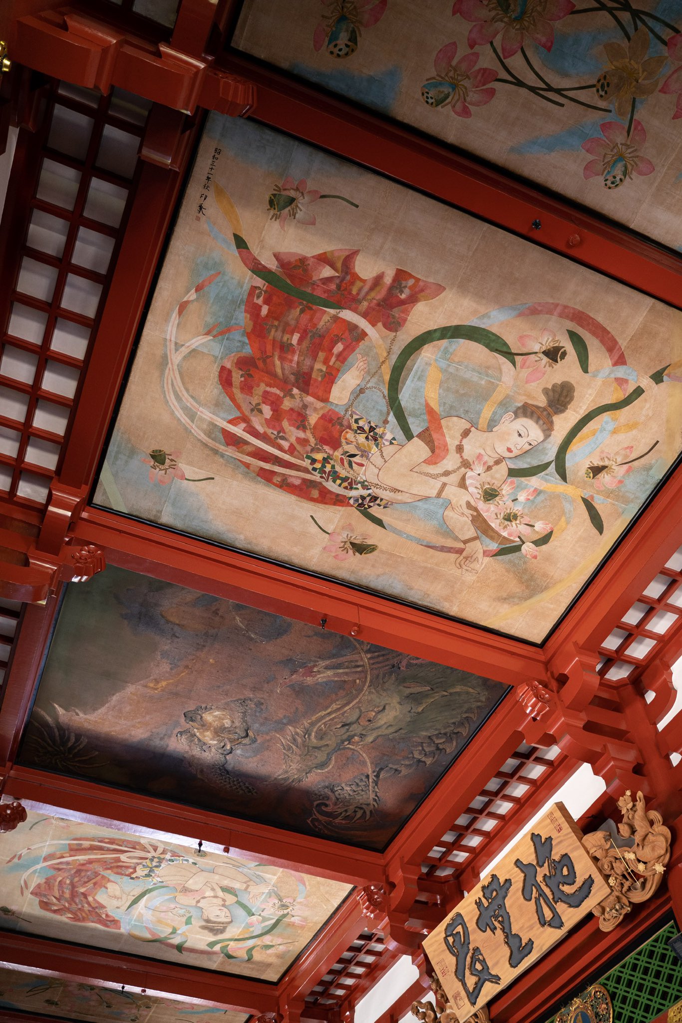 今日は夫のたっての希望で浅草にどじょうを食べに行ったのだが、せっかく来たしと浅草寺に寄ったら、本堂の天井画が剥がれてべろーんってなってた。これ大丈夫なの? 教えて詳しい人! https://t.co/DFsJsfsY9v
