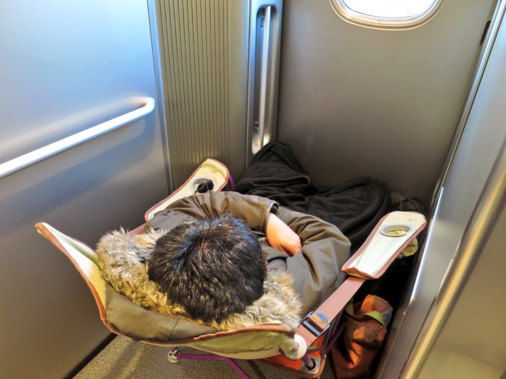 これスノピっぽい型の椅子でめっちゃ嵩張るから、車内チェアリングやる気満々で乗車してそう https://t.co/cGCoBKDvmU