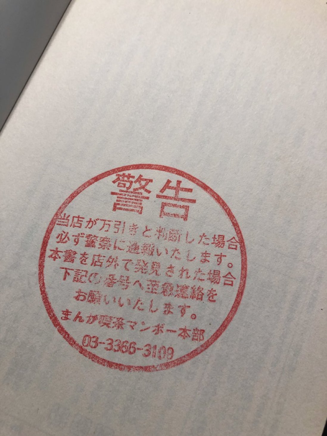 これ自分もあった。全巻セットをネットで買ったら判子ついてて、驚いて調べたら、出どころがすでに閉店したマンガ喫茶で安心したっけ。