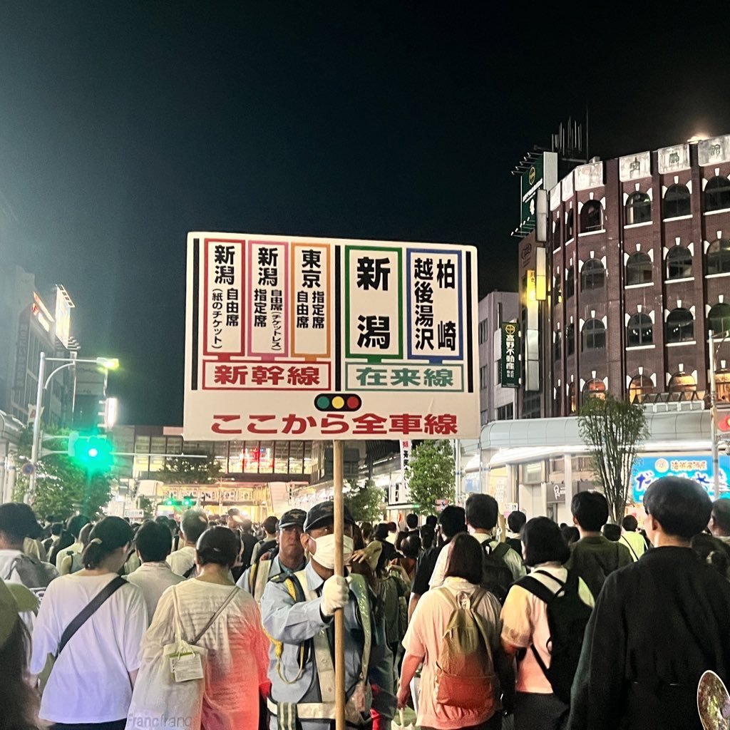 補足きっぷを予め買っていても、自由席だと行列地獄でした。あと在来線の柏崎・越後湯沢方面は問答無用で行列。んほおおおお正解は新幹線eチケット指定席ですねeチケット自由席、タッチでGo新幹線でも優先レーンには入れる様です https://t.co/Zc2fQKEQAR