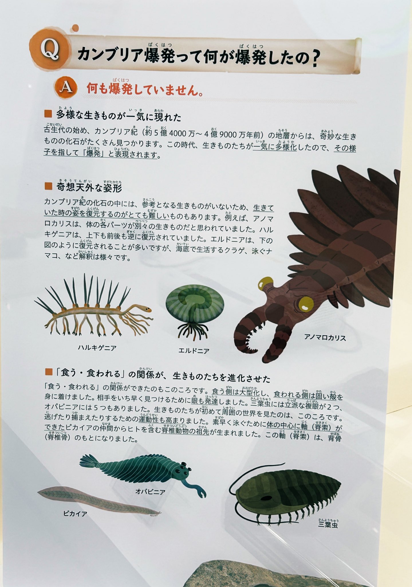 「カンブリア爆発って何が爆発したの?」Q&A形式のパネルははじめに明確なアンサーがあるのが大事なんだなあ。他のパネルも展示も本当に最高だったので、お近くの方・夏に沖縄を訪れる方はぜひ遊びに行ってみてください!! https://t.co/hIoeyewdII