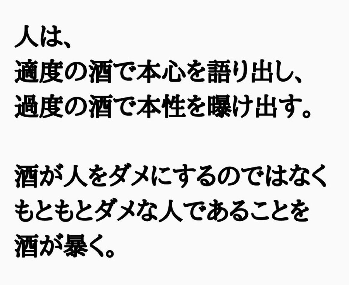 「酔っ払うとやらかしちゃうんだよね」じゃねーんだよ。酔った自分を別人格みたいに扱ってても、何度も人に迷惑かけていることを自覚しながら飲み始めるその瞬間のお前はシラフなんだよ。