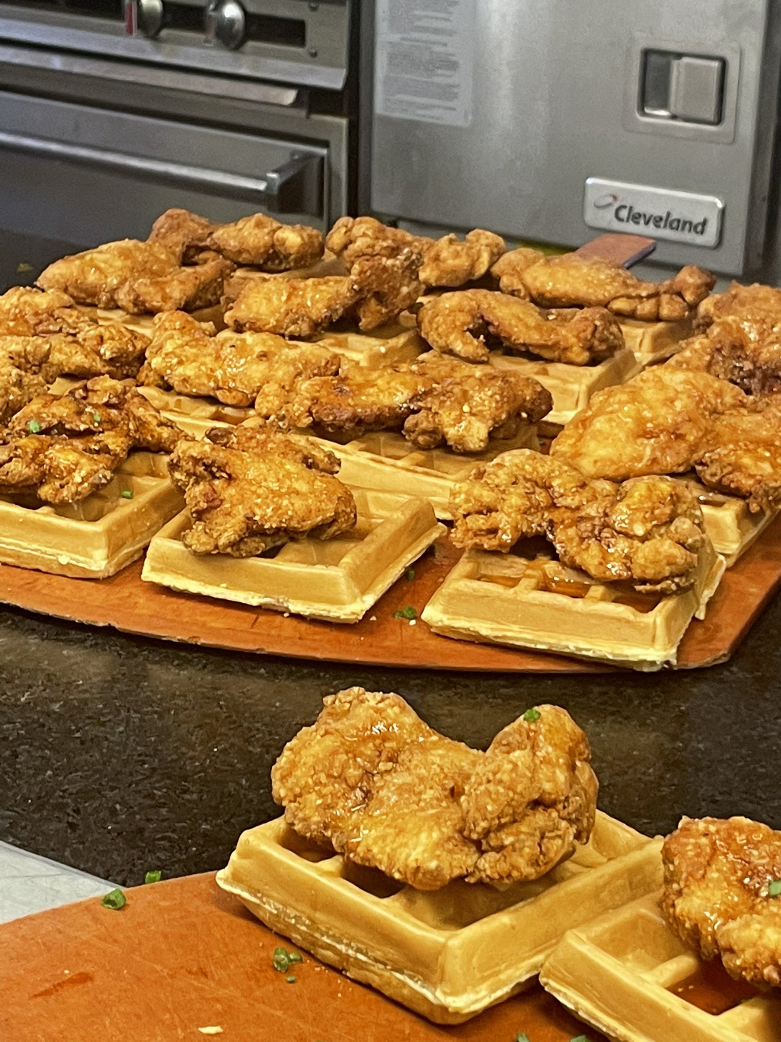 @yakinik_tabetai チキンワッフル、メイプルシロップたっぷりとかけてたべたいてすね🥰