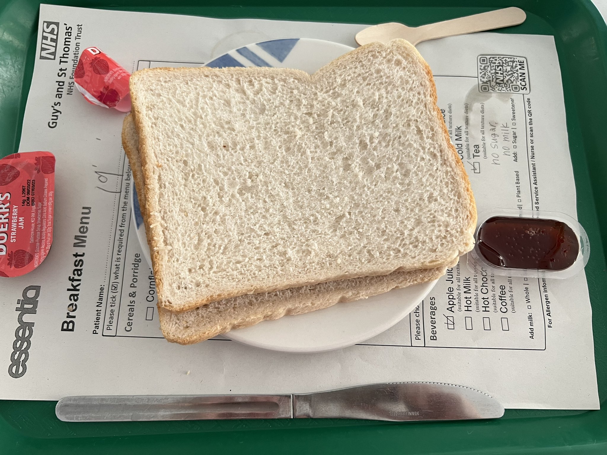オランダの病院食は食パン2枚もあるし私は恵まれていた…? https://t.co/1c7duAMNl0