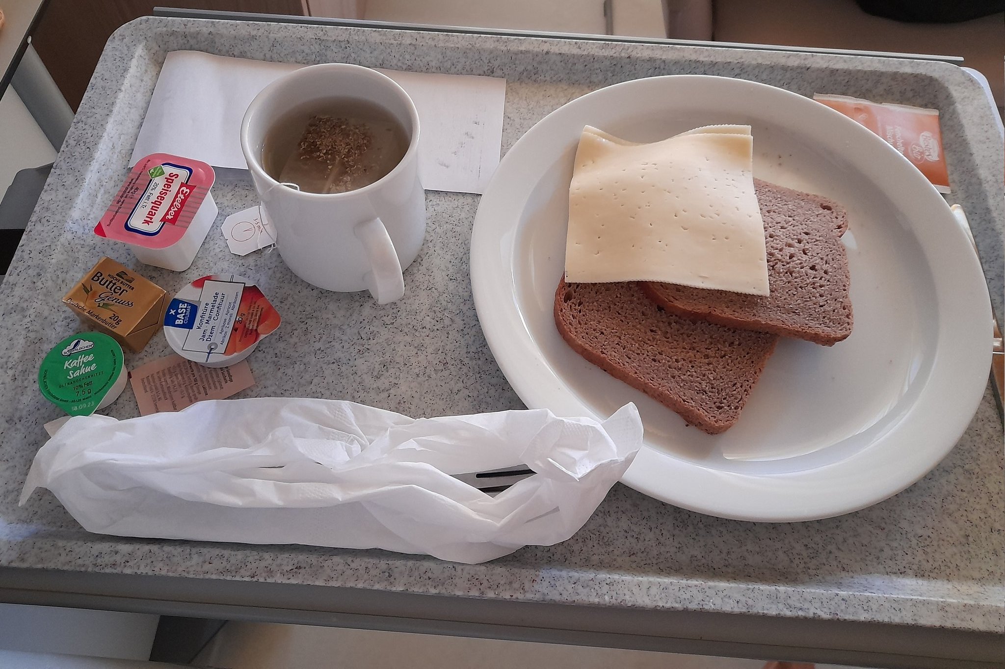 @suzume_kiyoraka これがとっても豪華に見えますね。。。(ドイツの病院にて出産後の朝ごはん) https://t.co/q4eqXoVDNY