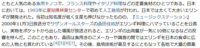 エリンギ好きなんだけど、桑田さんのおかげだったのか!ありがとう、桑田さん!