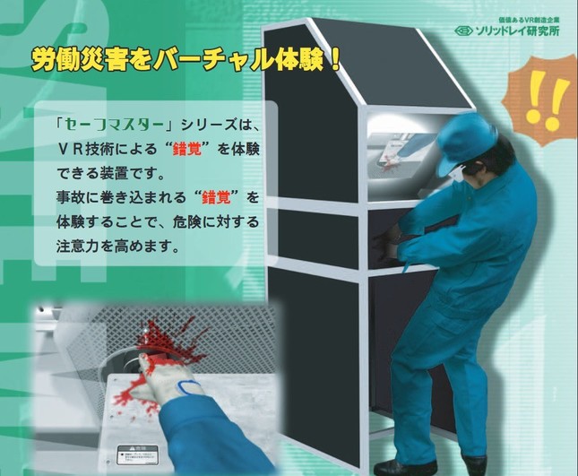 バーチャルリアリティーによる労災体験って、最近わりかしやってるところが多いんですが、大概『屈強なお兄ちゃん、おじちゃん達が、乙女みたいなかわいい悲鳴をあげる』「いやぁぁぁ!!」みたいなの。あと、ゴーグルつけて立ち位置がわからず、その場でぐるぐる回ったり。
