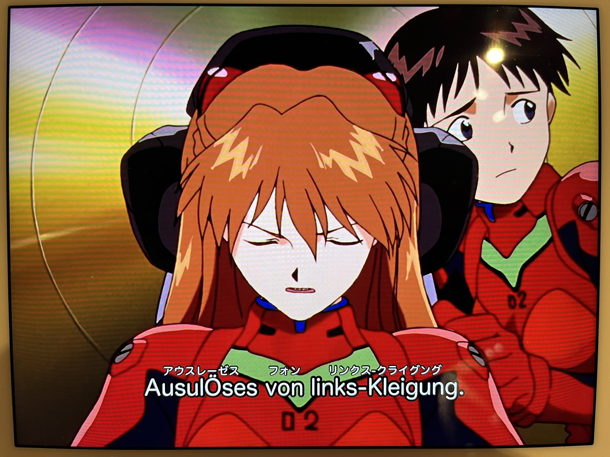 この場合、宮村優子の発音よりも台本のドイツ語が問題である。さらに言えば、アスカ用のプラグスーツを仕方なく着込んだシンジの恥じらい仕草も問題かもしれないが素晴らしい。