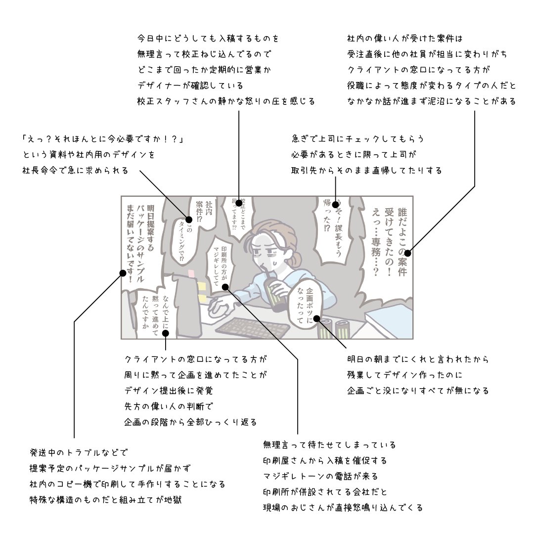 こういうの見ると、若い頃に一回デザイン会社で就職してみたかったなと思う。まあ新卒2週間で子ども生んどいて何言ってんだwって感じだけどwwフリーランスでイラストレーターしてるら今は収入は全然少ないけど上の感じで働けてる。けどちゃんと働いたことない劣等感は常にある