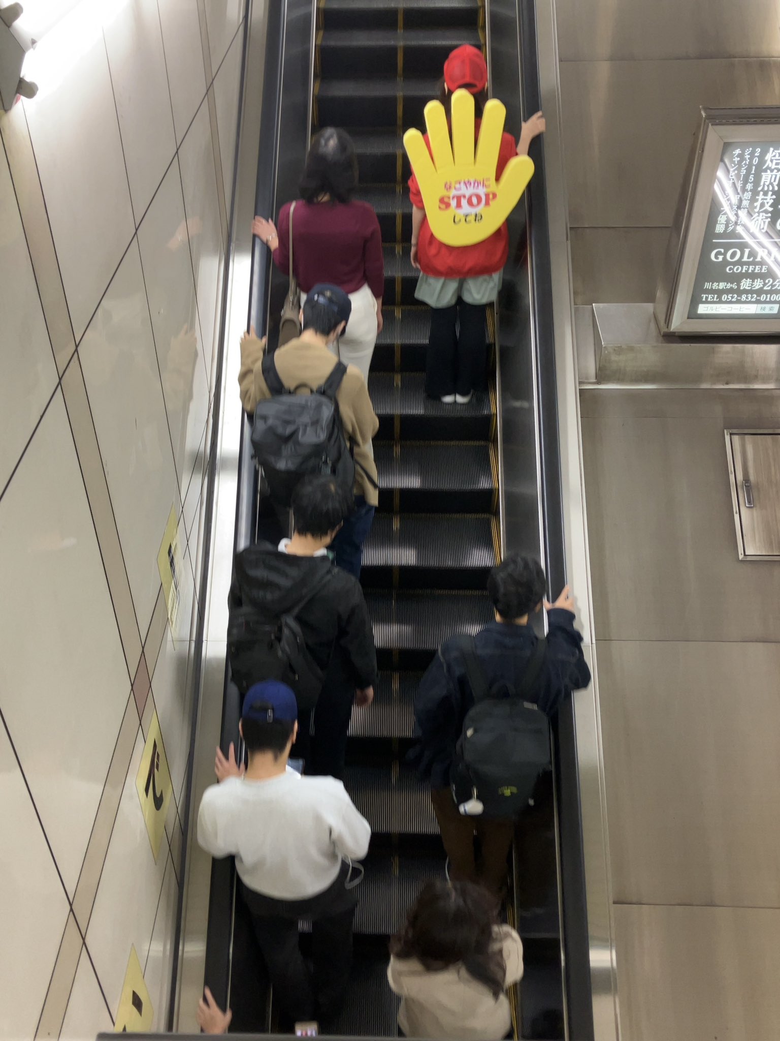 @Rabbit_D06 鶴舞線伏見駅のぼりエスカレーター皆んな左側に乗ってるよ右側に乗る勇気無いです