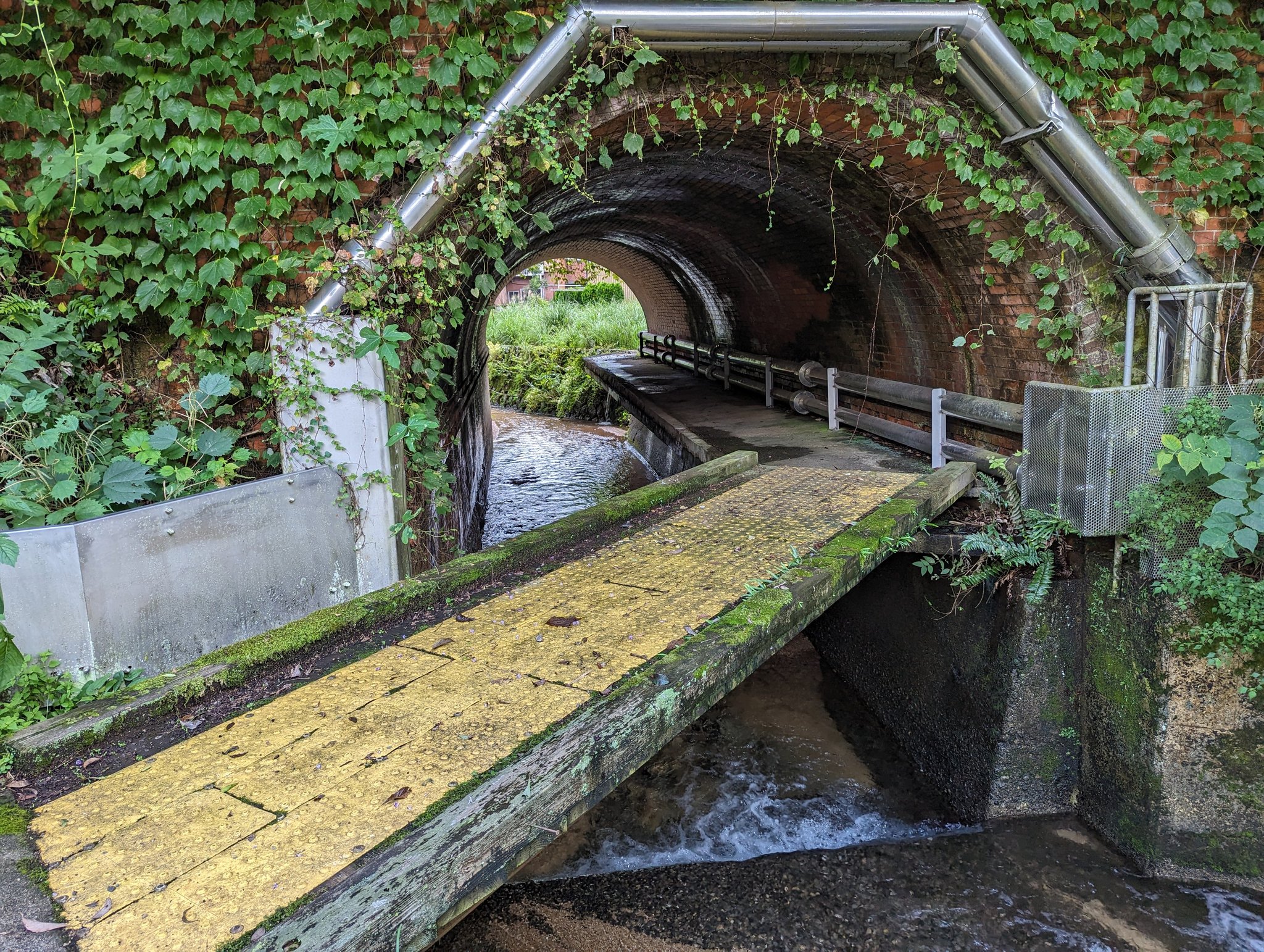 明治時代の水路に、かなりの力技で後付けされた歩道。無理やり感が凄い。ここを目ざして行ったわけではなく、思いがけずこんな道と遭遇。まだまだ面白い道があるもんだなぁ。 https://t.co/EvzwFSYgYL