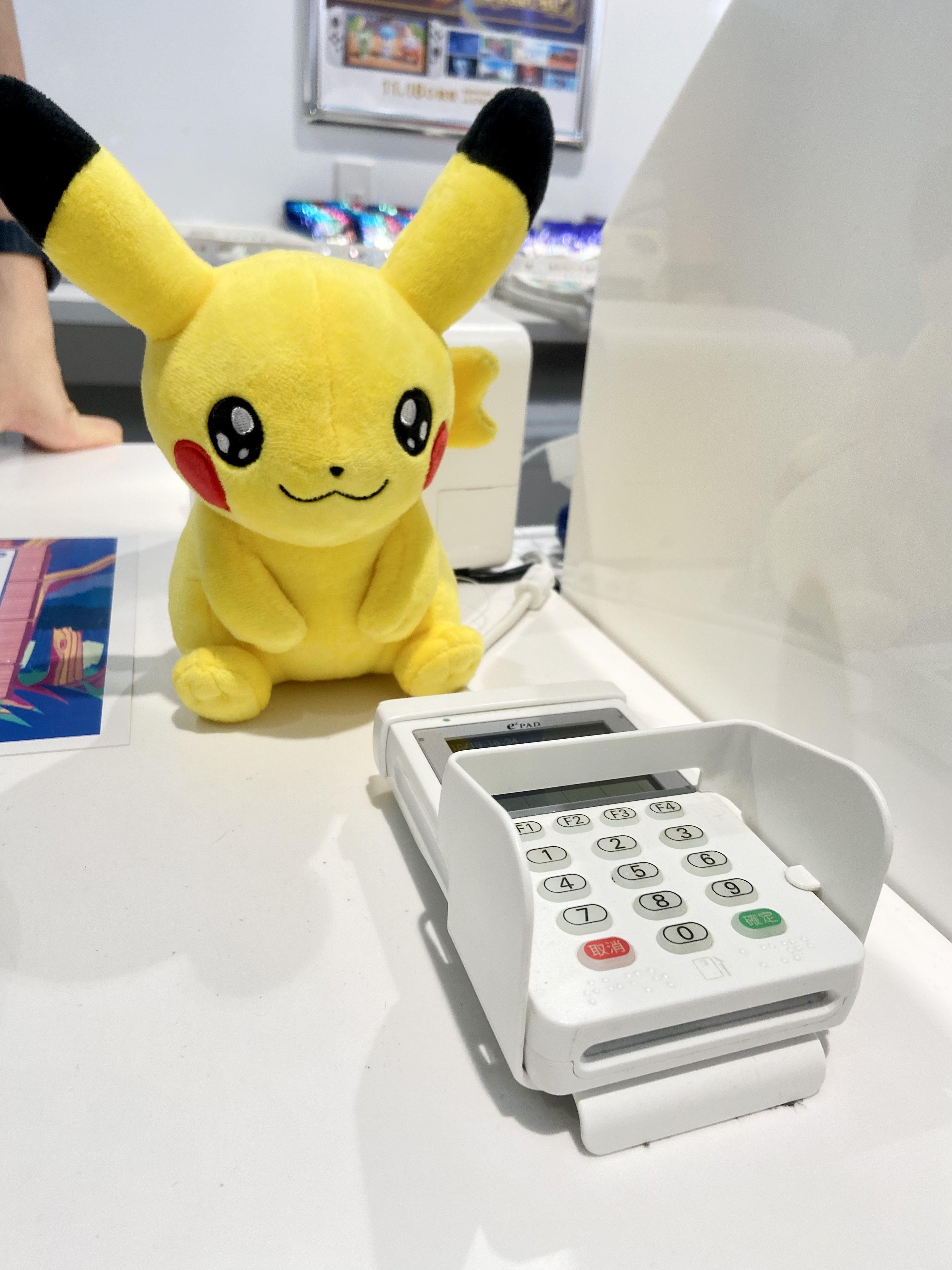 ポケセン各レジでマイピカチュウがタグ販促のお仕事してるんだけど、クレカ暗証番号入力する時にスタッフさんサッと手馴れた動きでピカチュウまで後ろ向きにしててめっちゃ笑顔もらった😂 https://t.co/rSgdk3SBgE