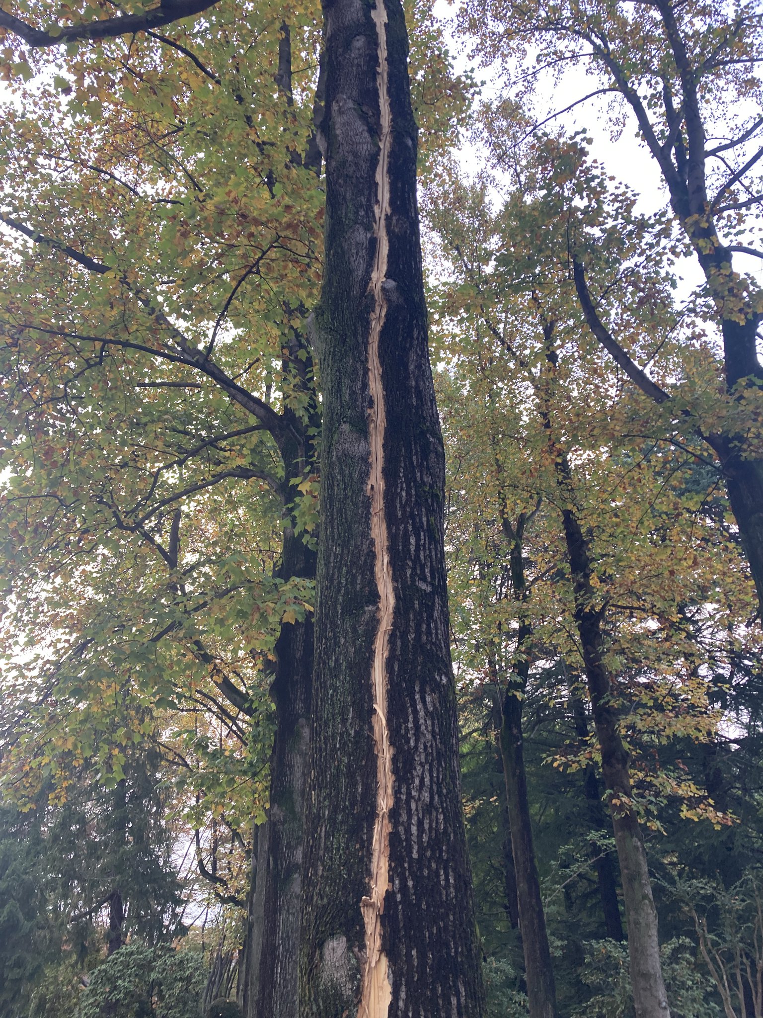 「必殺技でも食らったんか…?」栃木県にある公園の木に落ちた雷の“痕跡”がスゲー😱