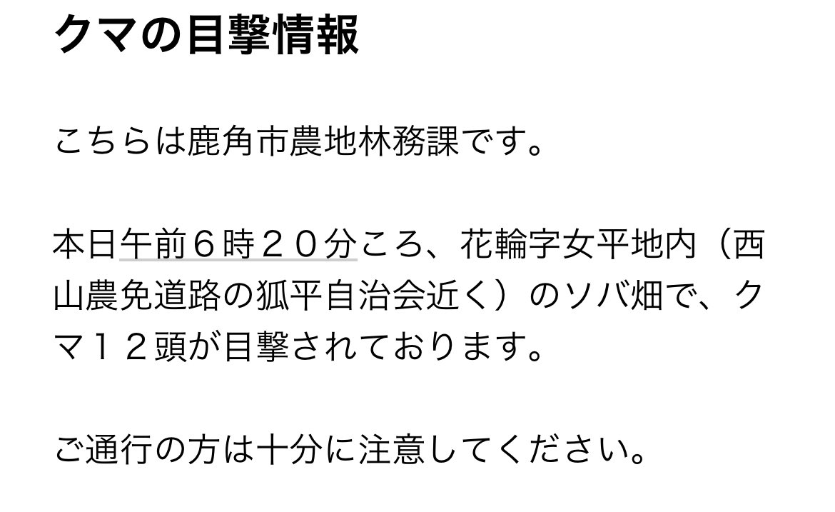 @akita_koe 1~2頭の誤植であって欲しいですね。クマ12頭はさすがに絶望しますわ。