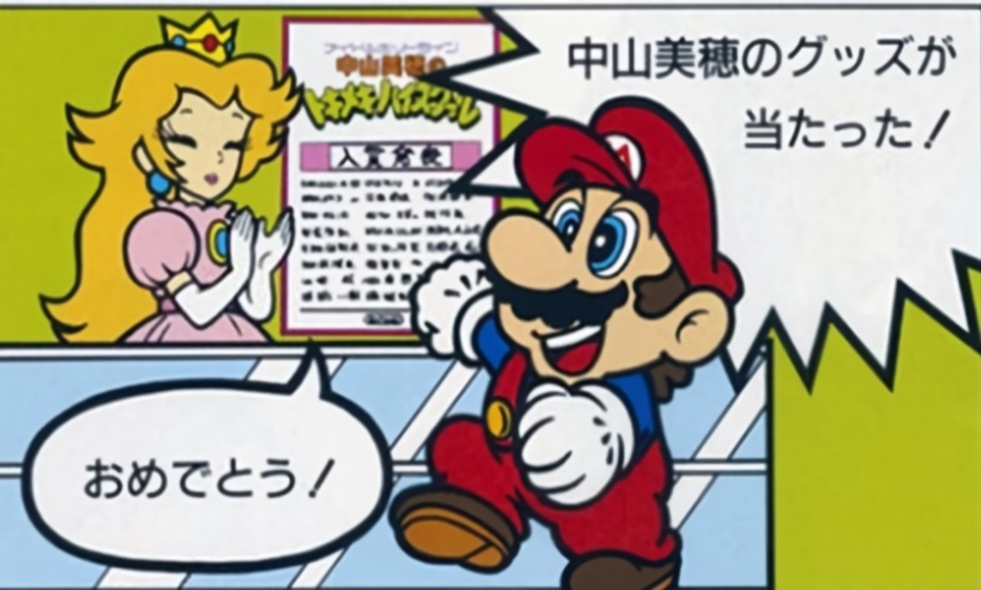 中山美穂のグッズが当たって喜ぶマリオ。