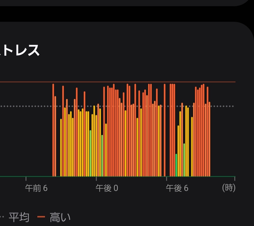 俺の持ってるスマートウォッチは朝目覚めた瞬間にストレス値真っ赤だよ。睡眠中しか青くなんねぇ(´ω`)