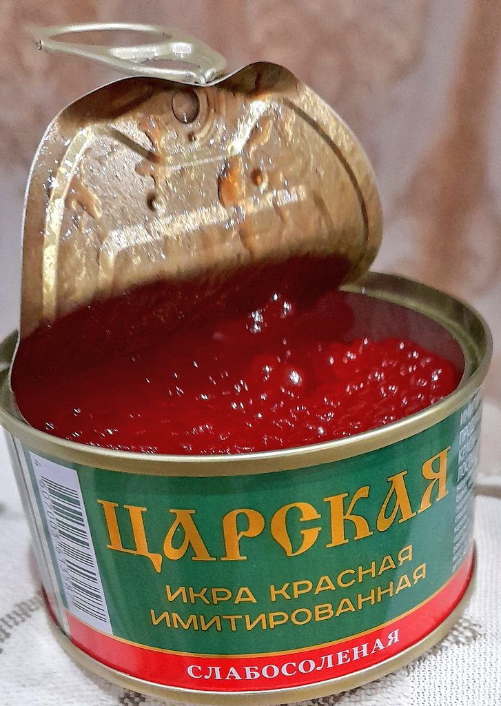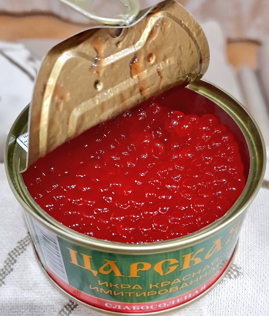 イクラを缶詰で売る文化、あんまり日本では見当たらないので新鮮。なおこれはイミテーションイクラ。缶詰にする必要あるんか? https://t.co/udWHCgMIg5