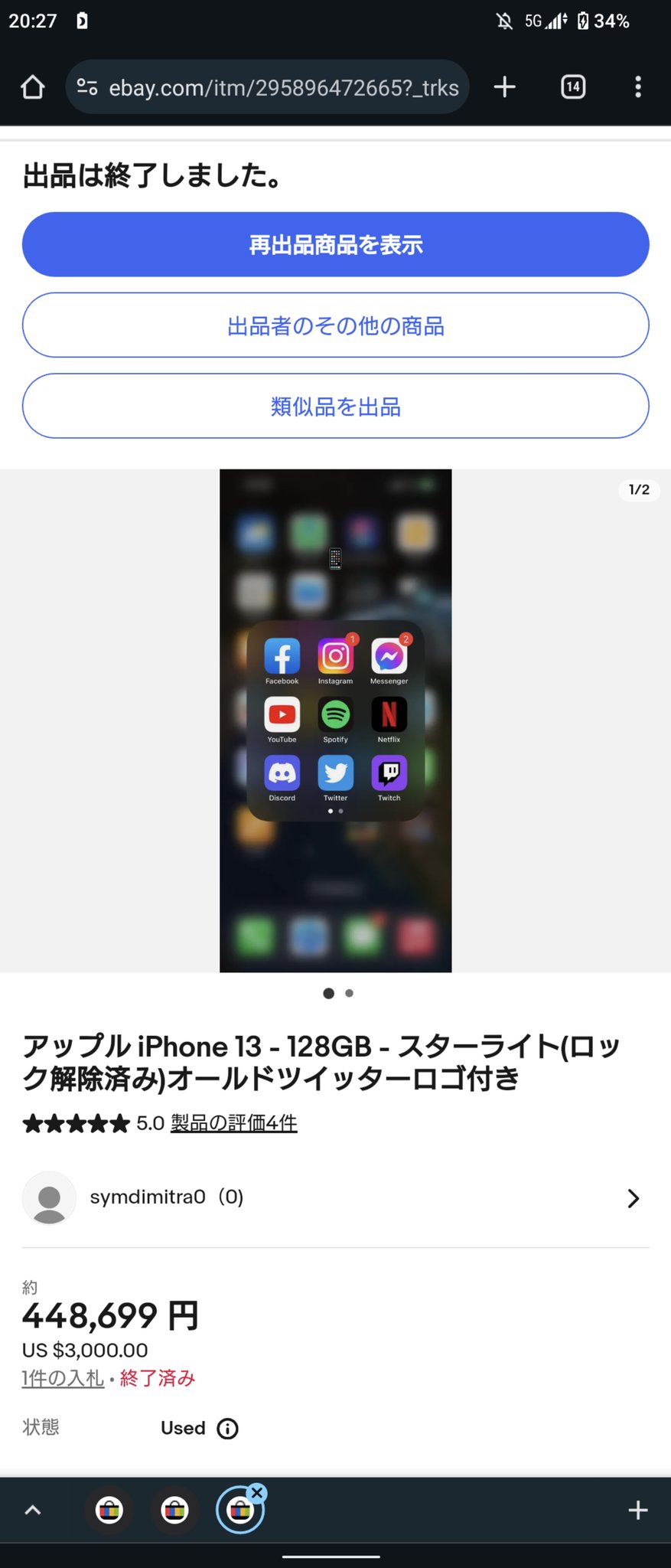 @iPhoneMaciPod 指摘されて気づいたので他の出品のほうも確認してみましたが、法外な値段で取引が成立しているケースもあるようです https://t.co/coiyy7a8z6