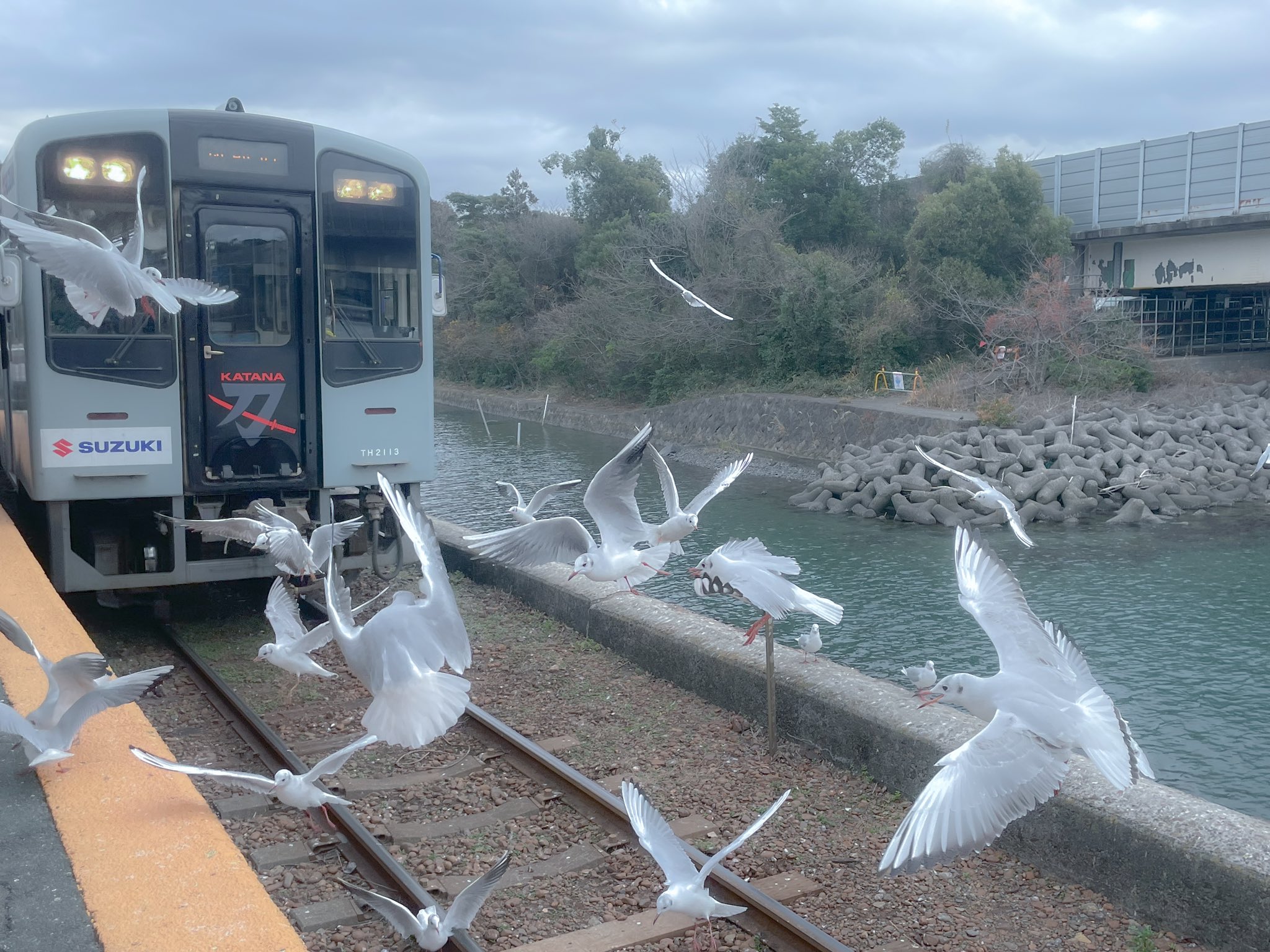 浜名湖佐久米駅や…東名高速浜名湖SAと三ヶ日ICの間辺りにある天竜浜名湖鉄道の駅、だからか東名高速にもよくカモメが表れるよね🤣