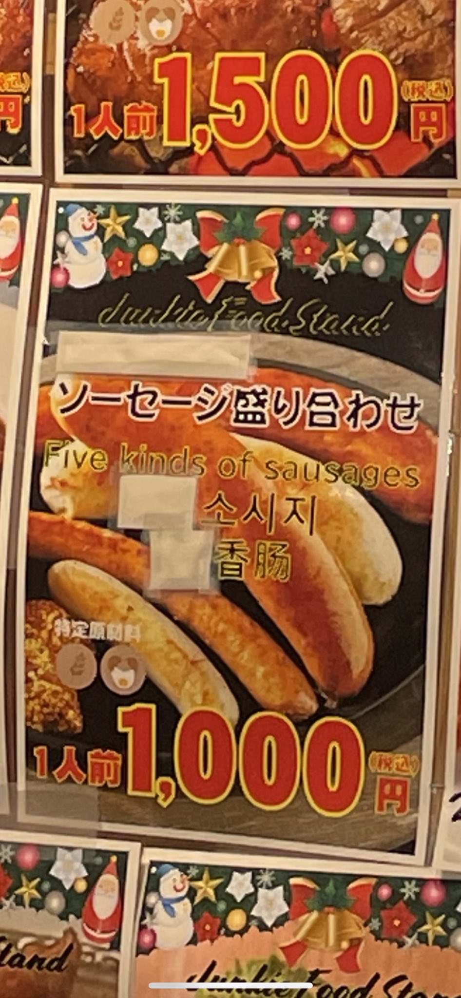 【写真詐欺】東京クリスマスマーケットで「ソーセージ盛り合わせ」(1000円)を注文した結果wwwww