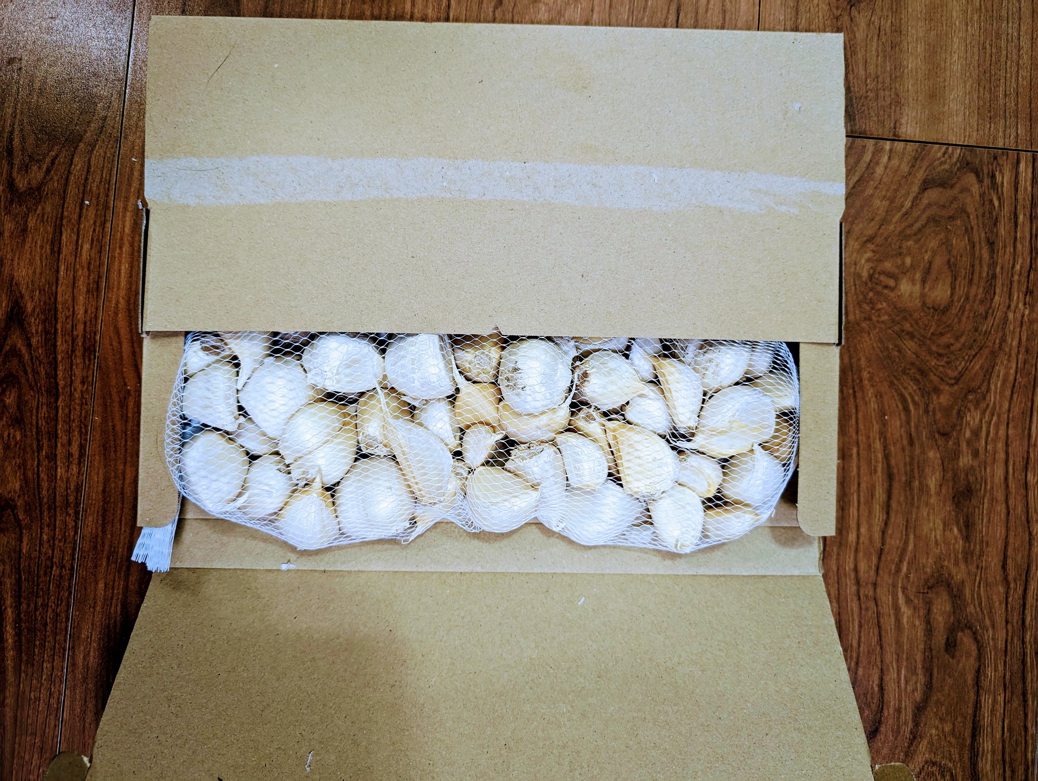 アマゾンで売ってた、青森にんにく不ぞろい訳あり品が良かったのでリピしてしまいました。ネコポスに詰まって届く。送料込みでだいたい980円(たまに変動する)。欠けてたり黒くなっちゃってる部分がたまにあったりしますが、ちゃんと美味しい https://t.co/S7oqJWl9ka