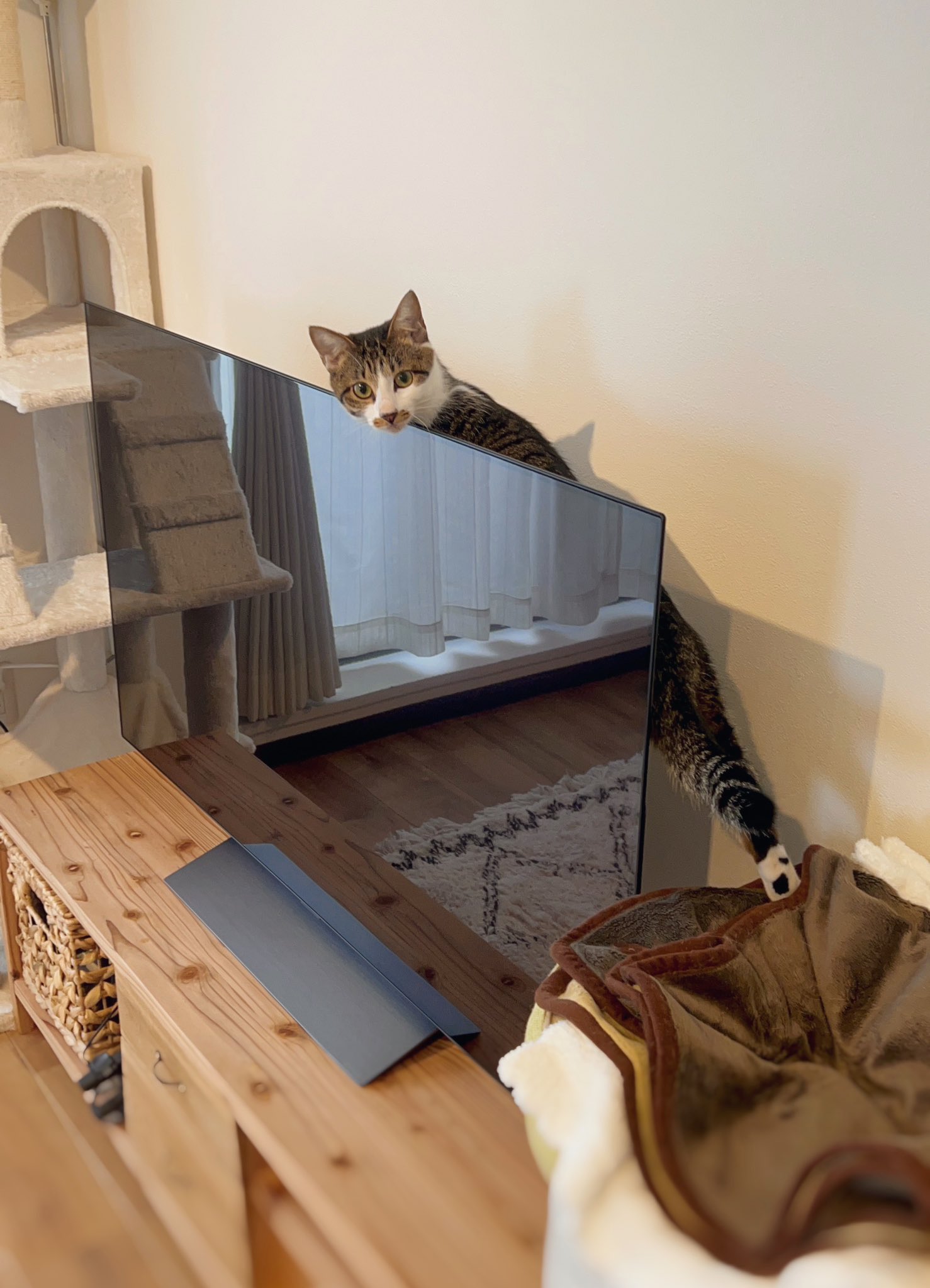 @sheepmandonuts 転倒も怖いですが、構ってくれなかったり朝なかなか起きてくれなかったりして不満なときにTVの角を齧って液晶漏れで故障させたうちの猫みたいなのもいるので、もし噛みグセがある場合は使わないときはモニターカバーみたいなものを掛けておいた方がいいかもしれません…!