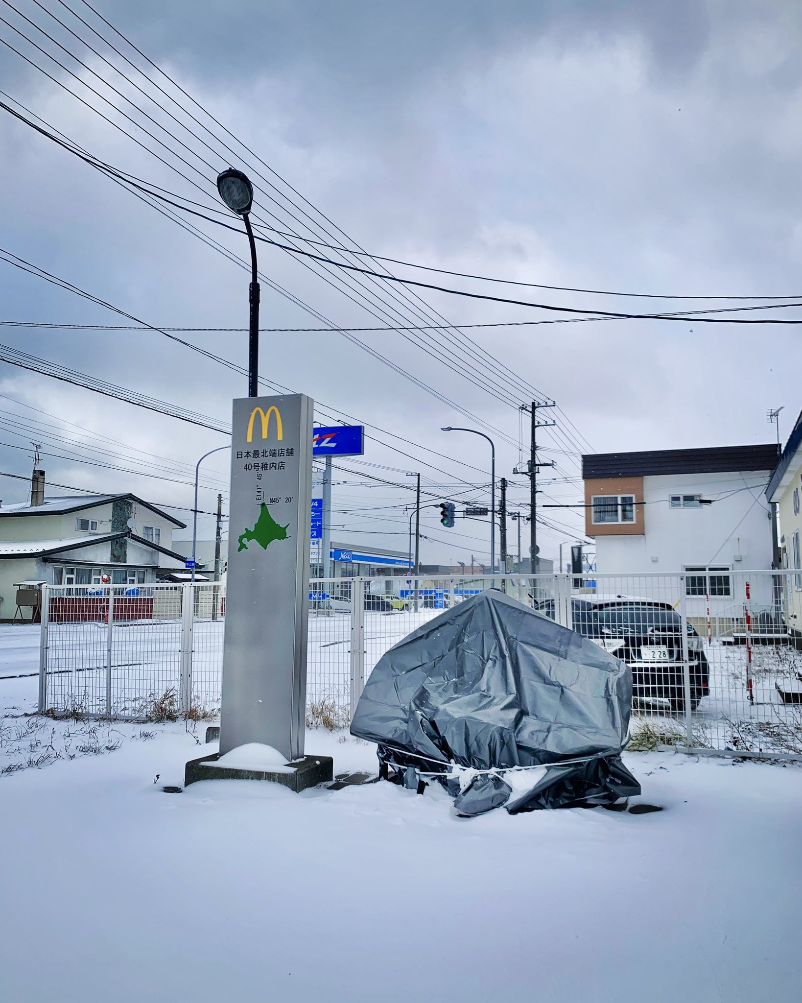 積雪の影響と見せかけドナルドが嫌われすぎてシートを被せられた説