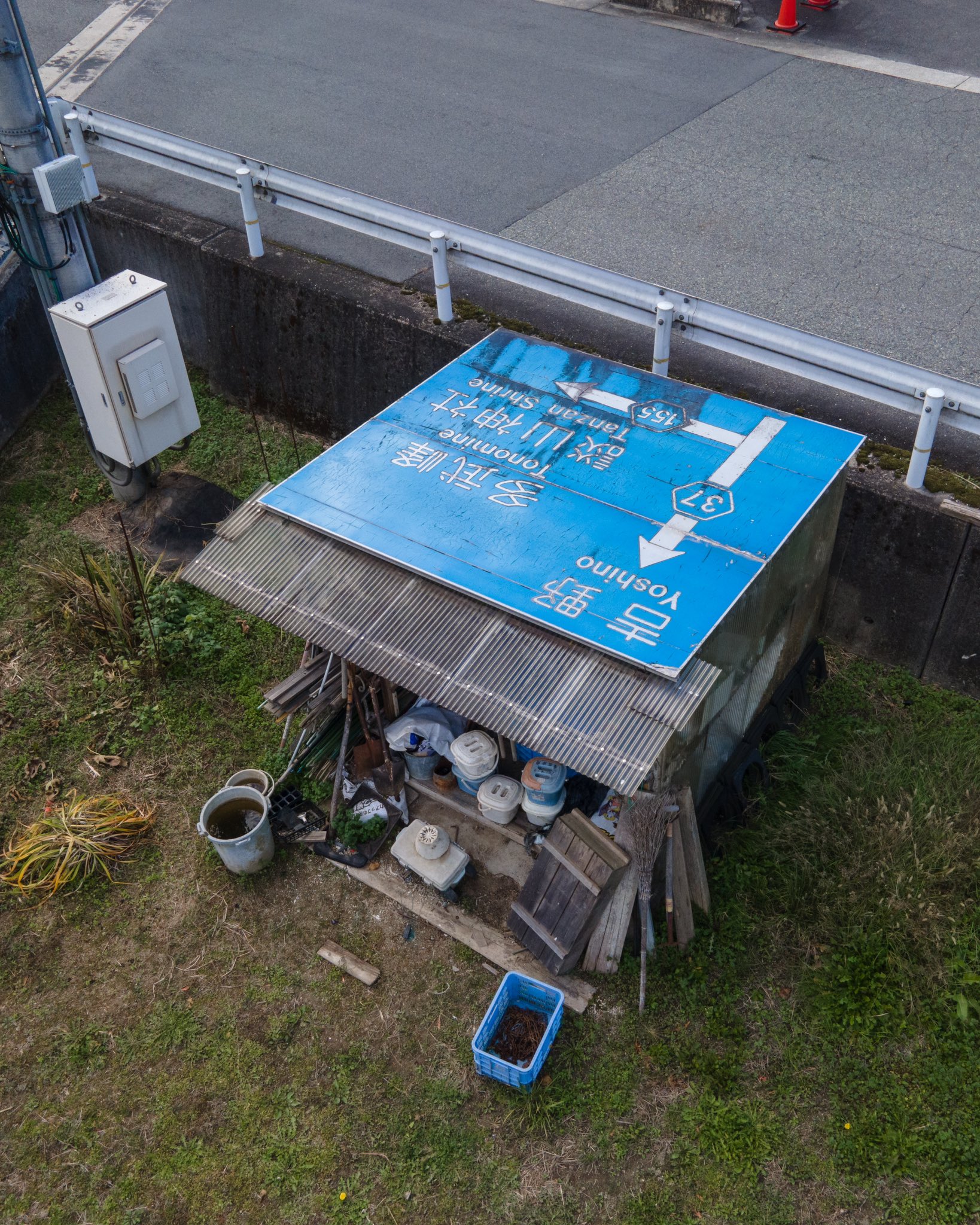 そんなのアリなんか!?と言いたくなる青看板の再利用方法、屋根。確かに防水性能と耐久性は高そうである…。 https://t.co/v3bH7KxTib
