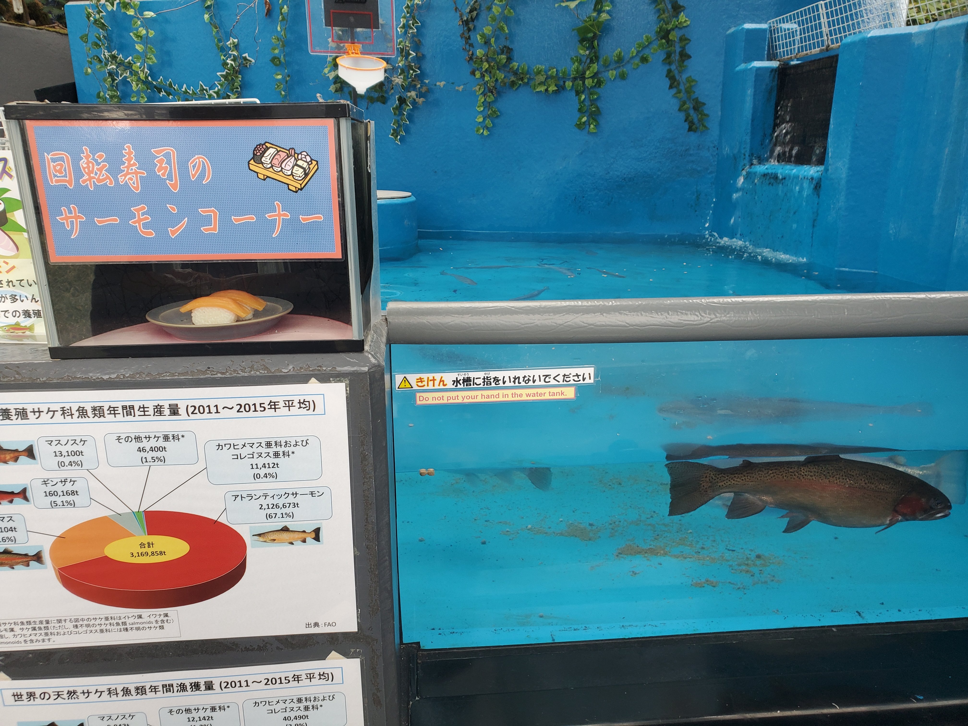北海道の標津サーモンパークではサケの横に刺身の画像が表示されてたり寿司のサンプルが置かれてたりする。 https://t.co/xjuymnZXp1