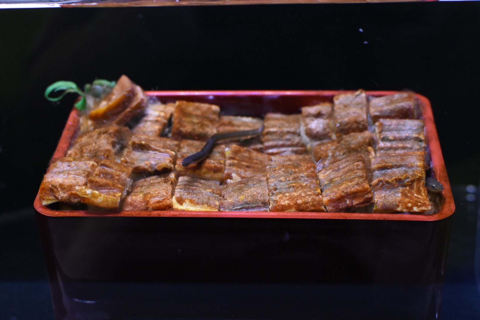 これ、決してふざけてるわけじゃないの。卵から孵化していく成長過程の展示なの。(魚は切身のまま泳いでると思ってるちびっ子もいるんだよ。)うみがたりでは食育という面で他の種類の魚についても地域と食文化としての学びも展示してることがあるよ。