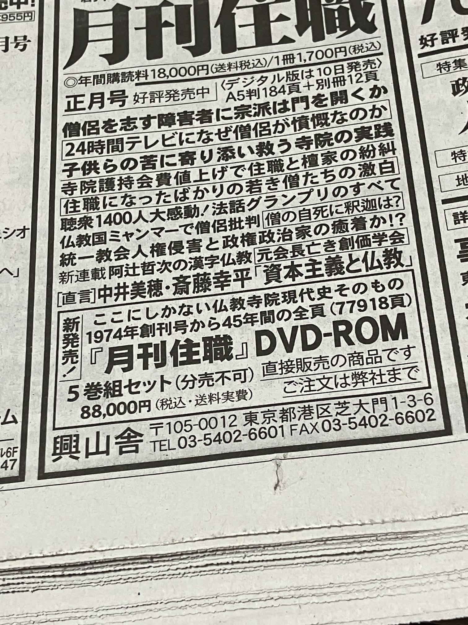@hakubutu 『月刊住職』は今年で創刊50年。興山舎という会社は設立26年目。前の出版元から引き継がれる時の経緯は、何があったのだろう?