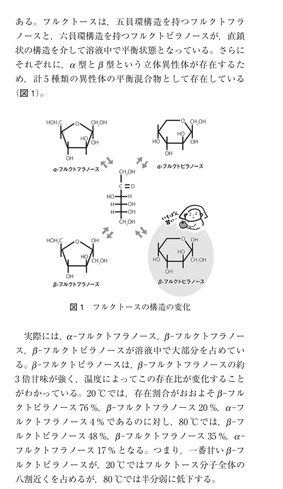 果物に含まれる果糖は冷やすと人間がより強く甘味を感じるβ-フルクトピラノースの割合が大きくなるので果物は冷やすと甘くなるhttps://t.co/BXno3U5gZ7 https://t.co/UOSPjYvbum