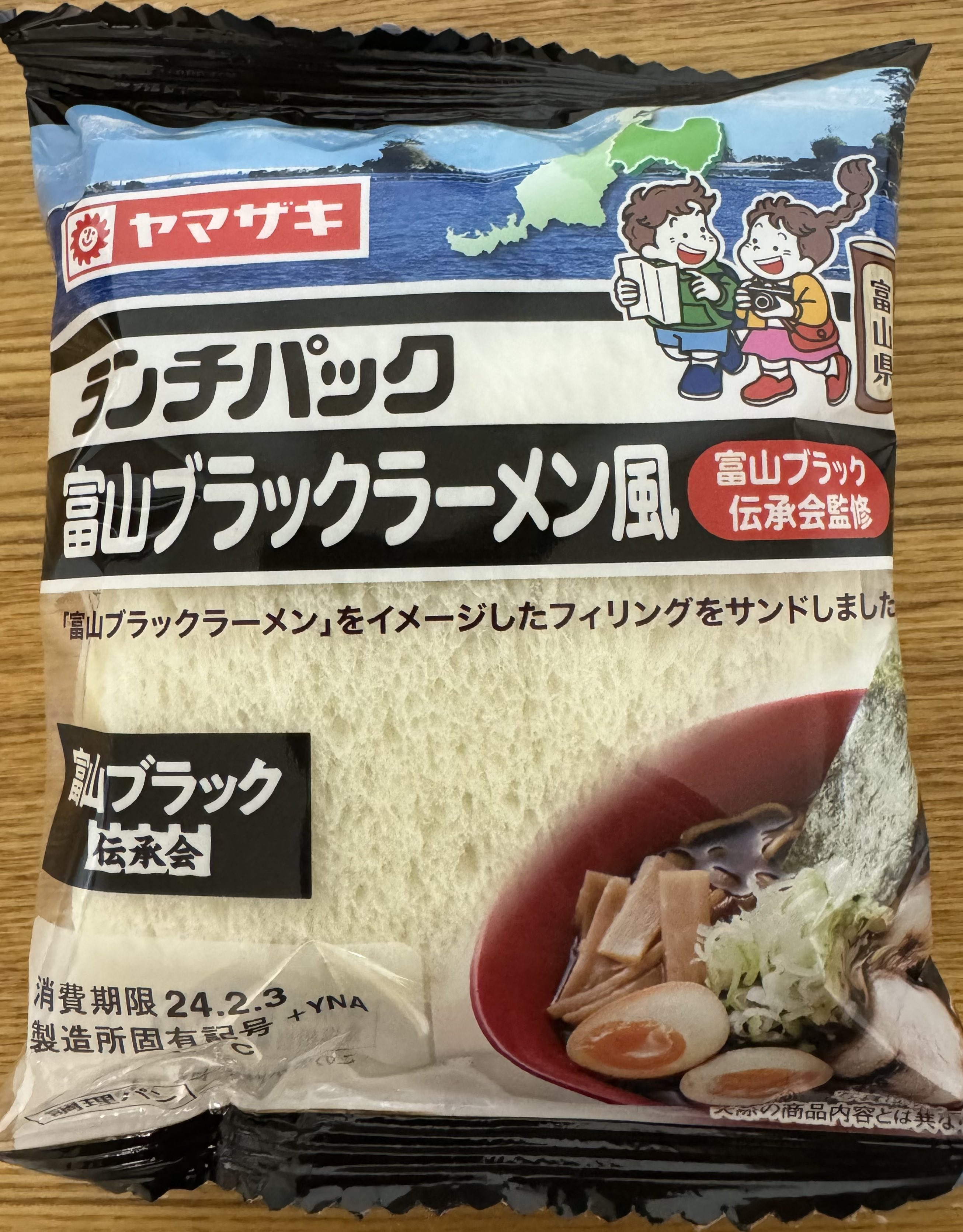 こちらの富山ブラックラーメン風ランチパックは、東海エリア限定のようです! 今日、富山市内のスーパーで発見して、即購入しました。https://t.co/19mN1wphNw