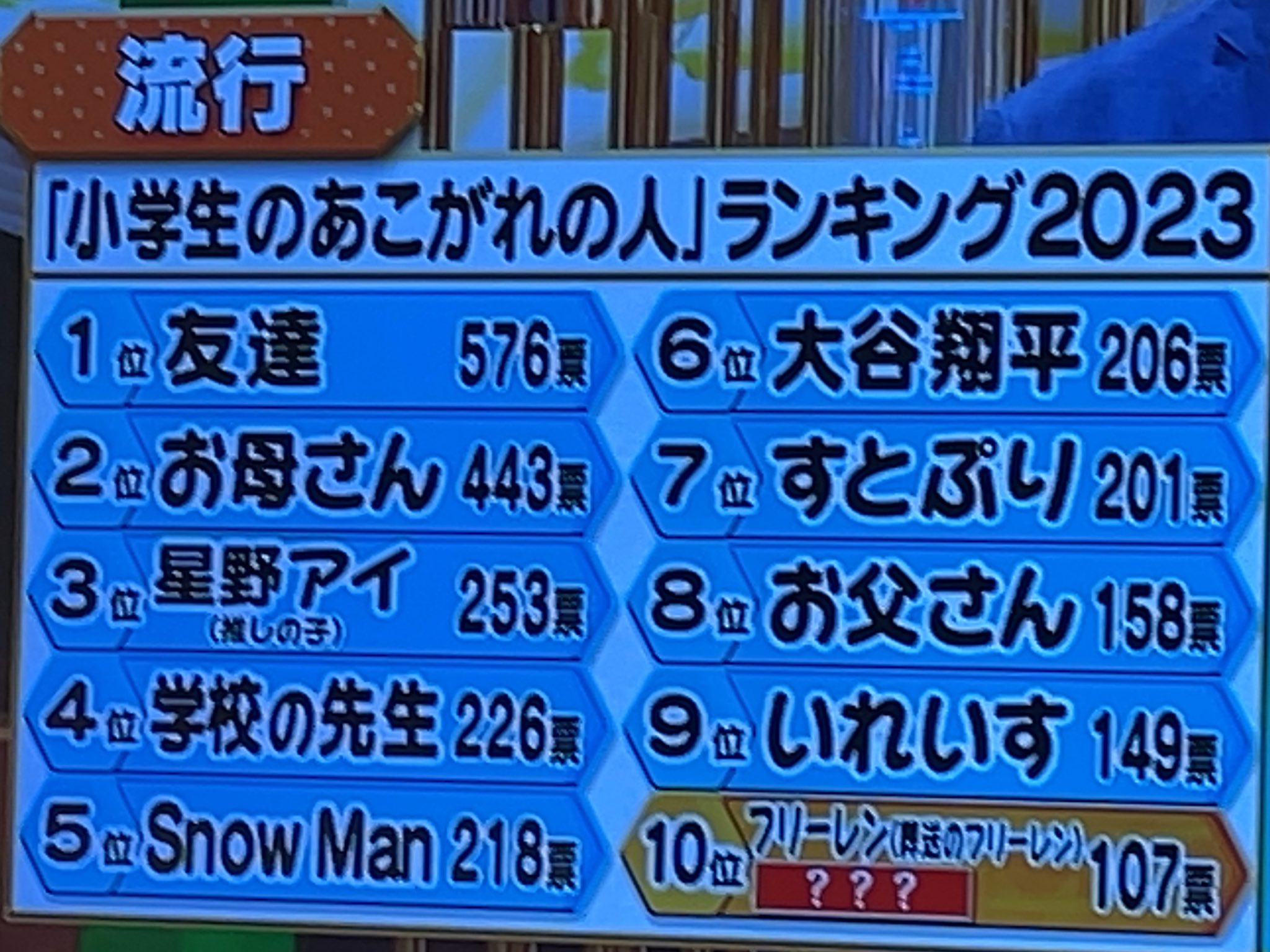 「お母さん」ならともかく、星野あいやSnowMan、すとぷりに「お父さん」が負けてるのは可哀想すぎる