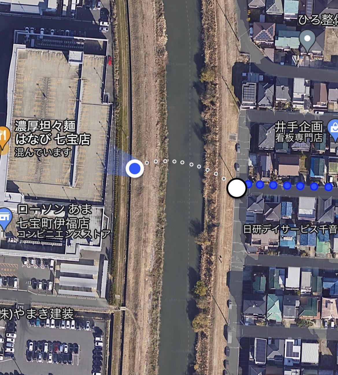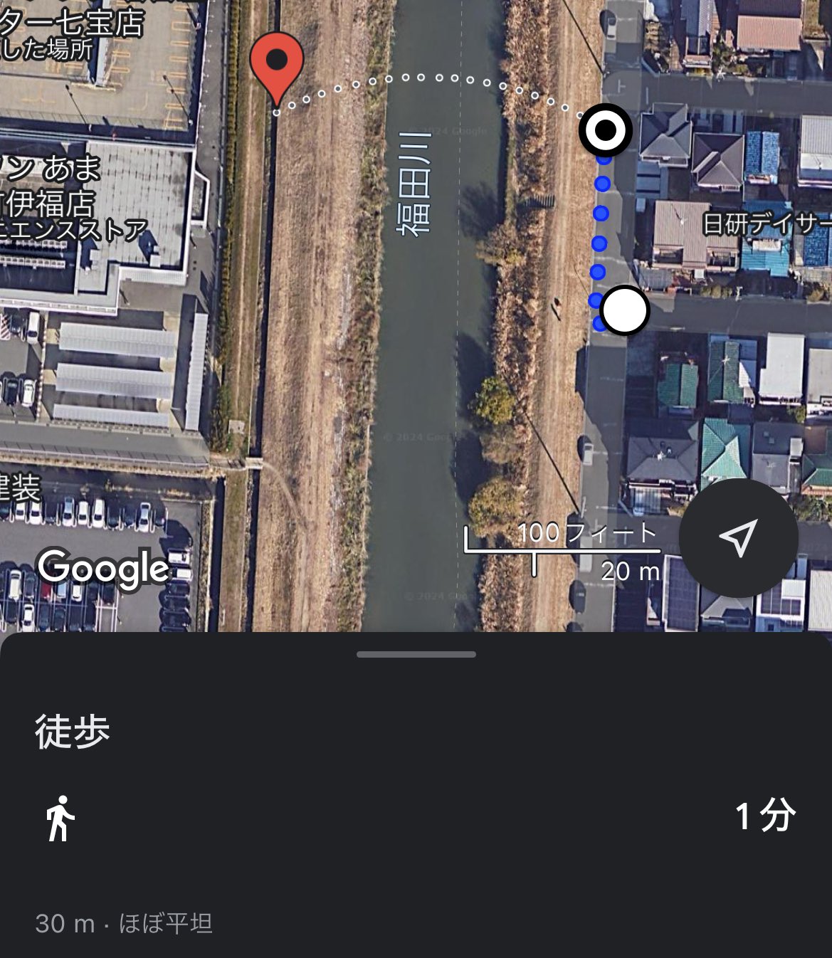Google Map、たまにこういう案内してくるときあるよなこの前なんかは線路が通ってる場所が堀みたいに窪んでて向こう側の道路に行くには橋がないと渡れないような場所で線路横切る案内してきた