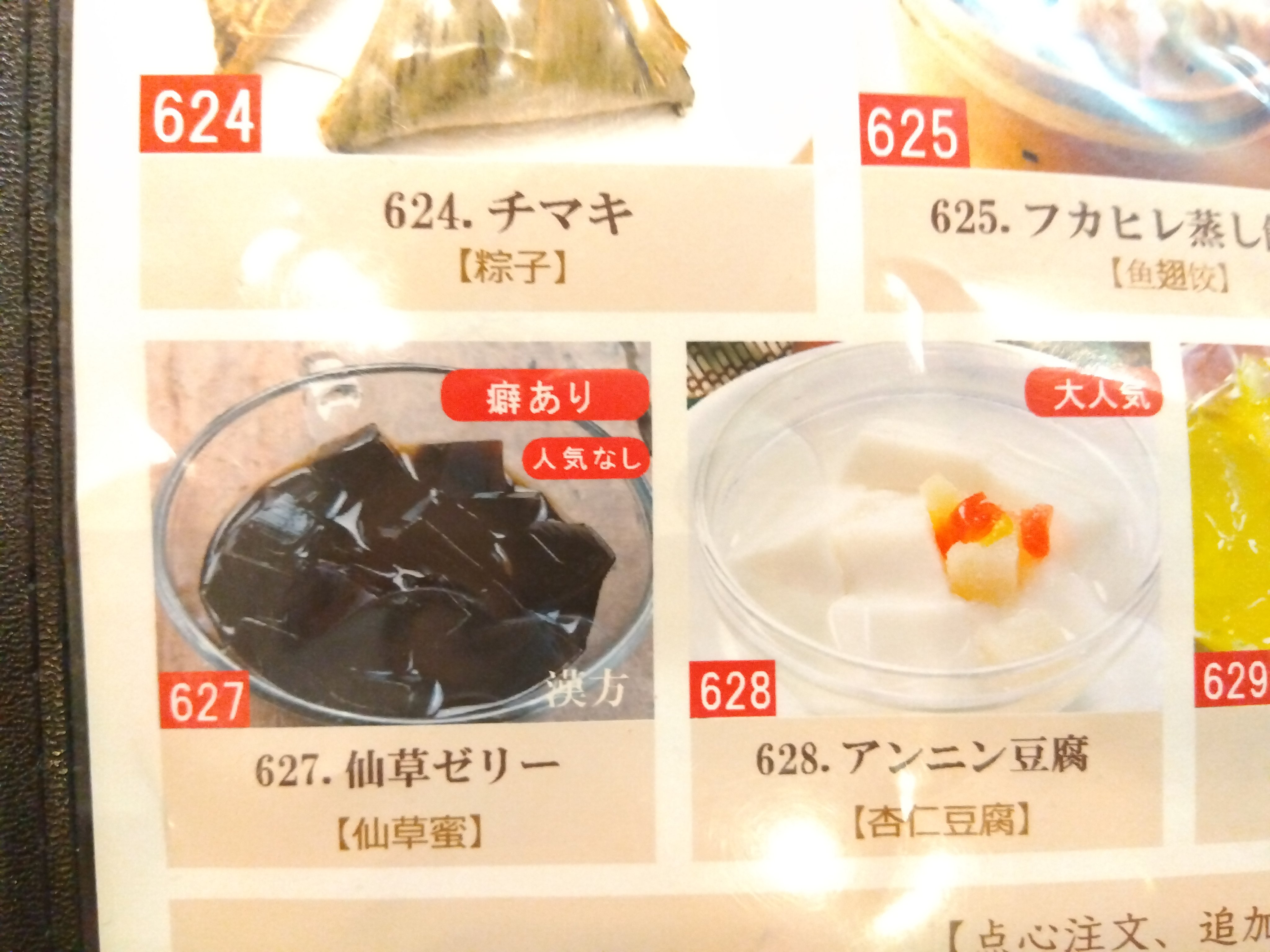 ネタかと思ったけど仙草ゼリーに「癖あり」と書いてあるあたり本気で真面目に良心的にやってるんだと思うの 好印象あと中国語で書いてないから(日本人には)みたいなニュアンスもありそうでも砂肝きゅうり、大好物なのでちょっと悲しい もち米肉団子なんかもハズレないと思うんだがなぁ…