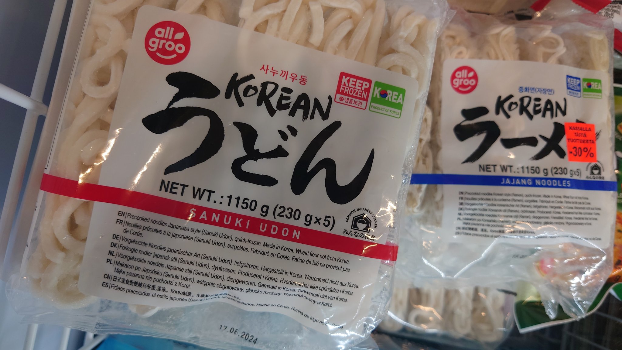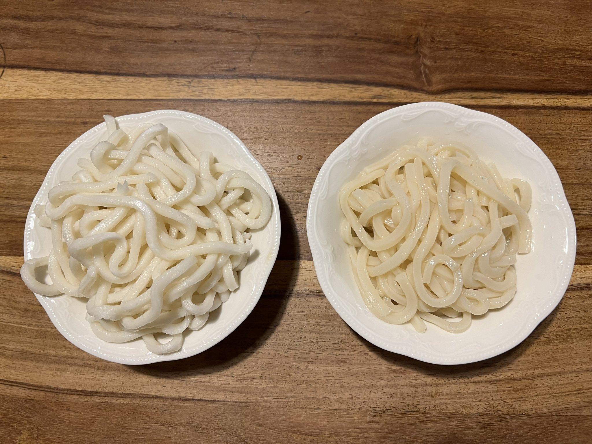 @marony38 左がその韓国讃岐うどん、右が日本の冷凍讃岐うどん。重量は同じだけど韓国のは真空バックのうどんみたいで美味くなかった。日本のは半透明でもっちりして美味しかった。あまりの出来の違いに思わず写真を撮ってしまった。 https://t.co/uiuIj62zEn