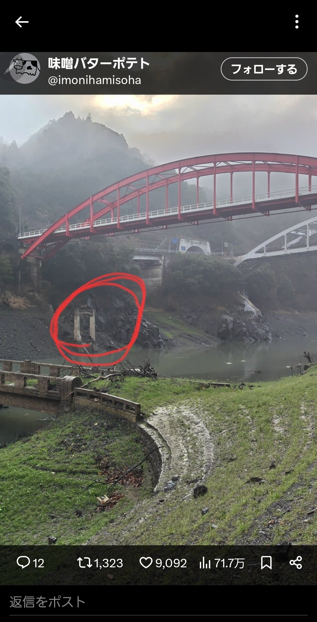 @6IOOI9 まさしくその通りで、2代目の橋には流木が絡まっておりました水位が低いこの時期だからこそ見れる景色と言えそうです https://t.co/Wrhq5mfL8k
