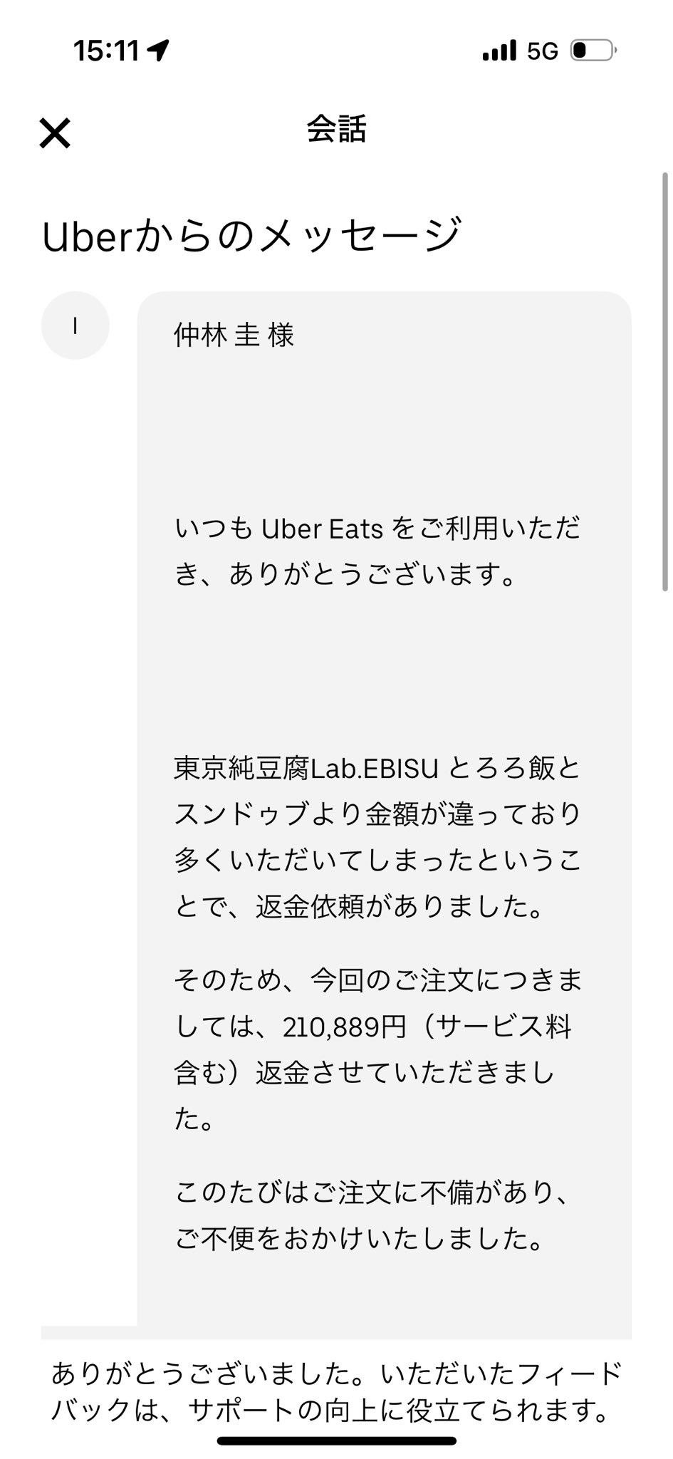 え、今気づいたんだけど今日の昼頼んだUberの東京純豆腐の支払いが21万になってるんだけど、、、、これどうすればいいの、、、返金あるのかな https://t.co/UVcUuS386B