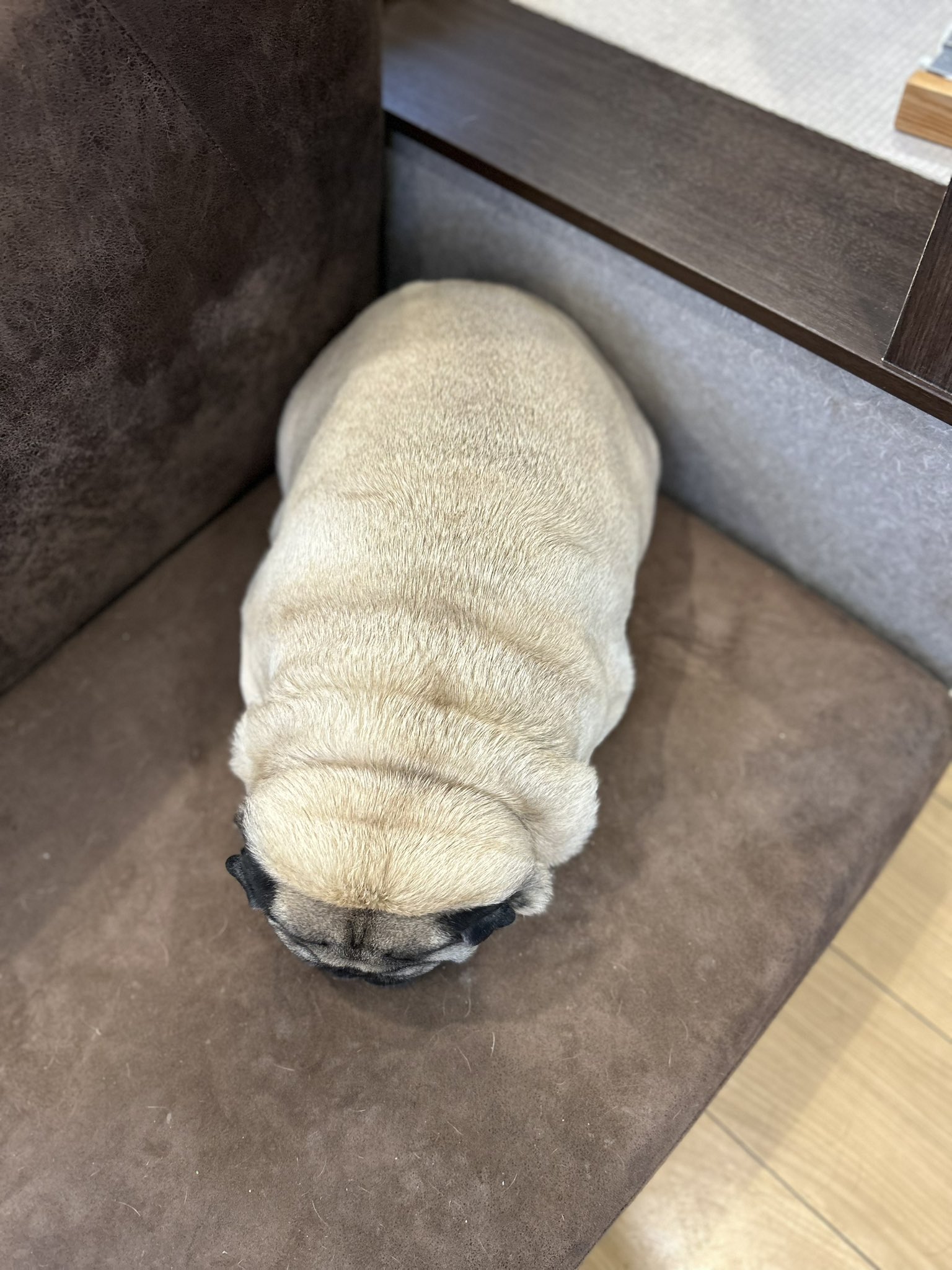 我が家では「パグいもむし化現象」と呼んでる😂(蓄えた脂肪とありあまる皮によって手足が完全に埋もれてしまうこと) https://t.co/F2tWf7nPTH