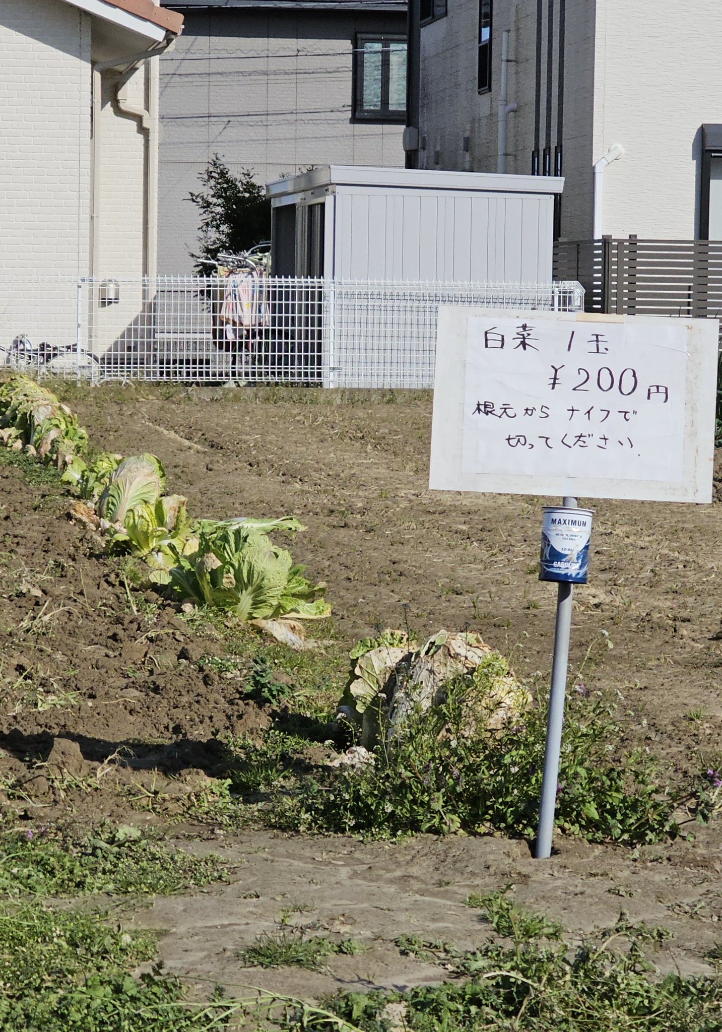 これ畑泥棒対策なんじゃ。備え付けのトイレットペーパーが盗まれる事案が多発したから、1個◯円ですって貼り紙したら盗まれなくなったって聞いたことある。でもご丁寧に根元から切ってくださいって書いてあるから、本当に販売しているのかも。鮮度も良さそう。